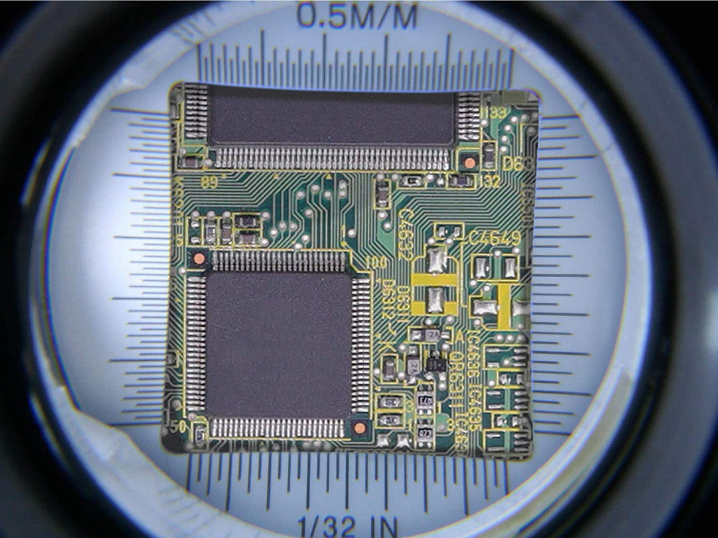 A useful LED illuminated X5 inspection magnifier ideal for PCB inspection etc. The focal point is fixed (focused on its faceplate where the object being inspected is held against). The eyepiece is 50mm in diameter (the eyepiece housing utilises a twin lens glass lens structure). There is an internal 25mm precisely graduated scale. The bright LED bulb is powered by 2 x C type batteries (supplied). Made in Japan by a long established and highly regarded precision hand tools manufacturer.