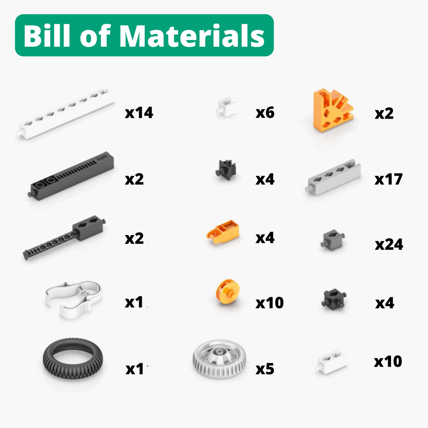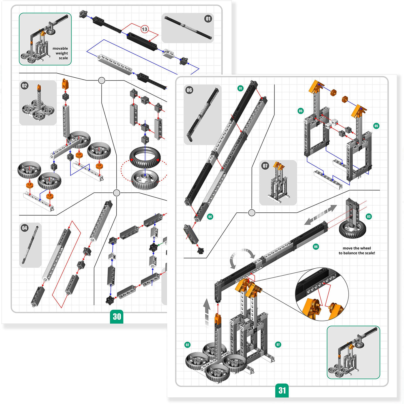 - BUILD 16 working models such as a seesaw, a movable weight scale, a wheelbarrow, a parking gate, a toy with moving figures, a panto-graph and two types of linkages and 8 structures