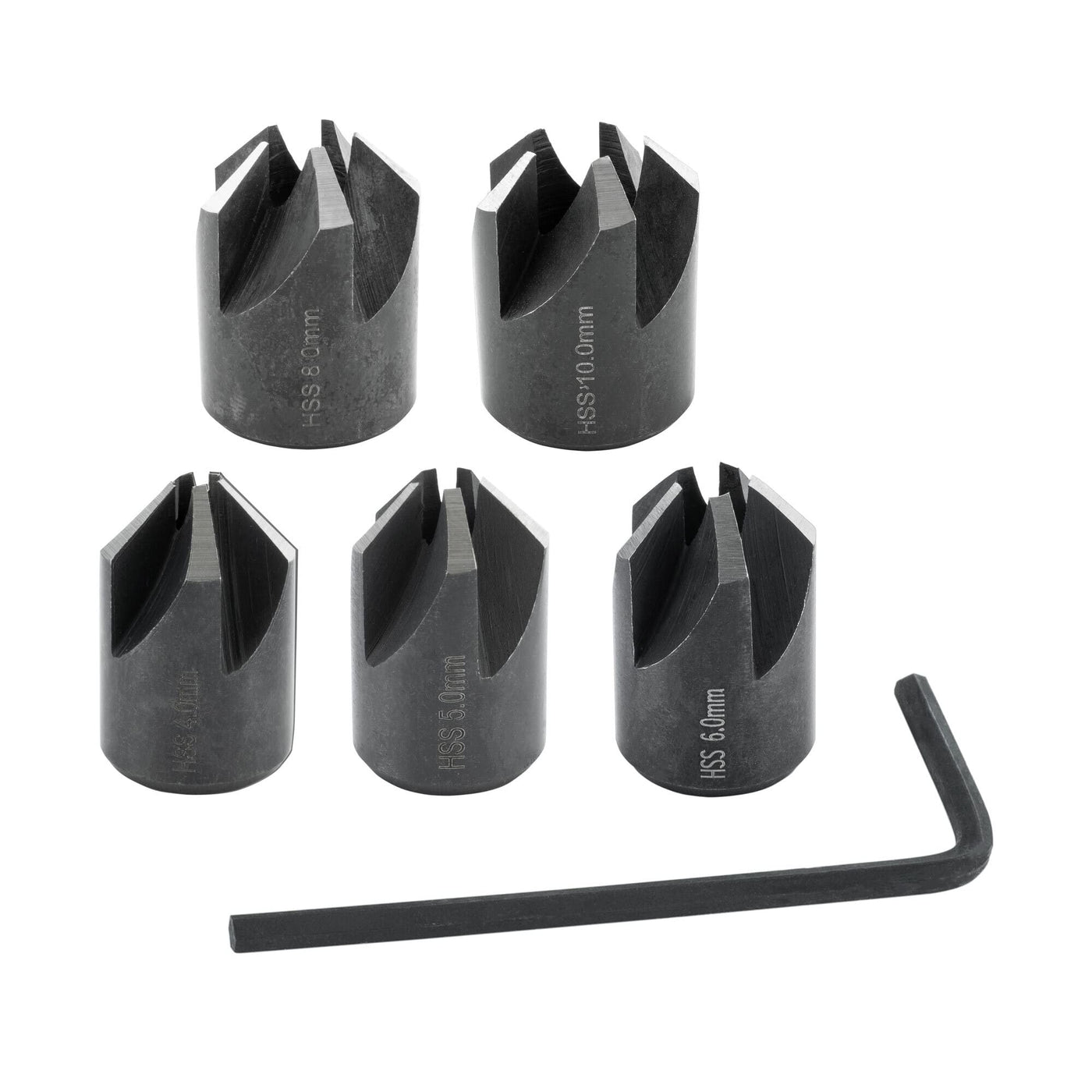 ENT 26516 5-piece countersink set HSS, diameter (d) 4, 5, 6, 8 and 10 mm, e 90°, right 5-piece. Set Ø 4 - 10 mm