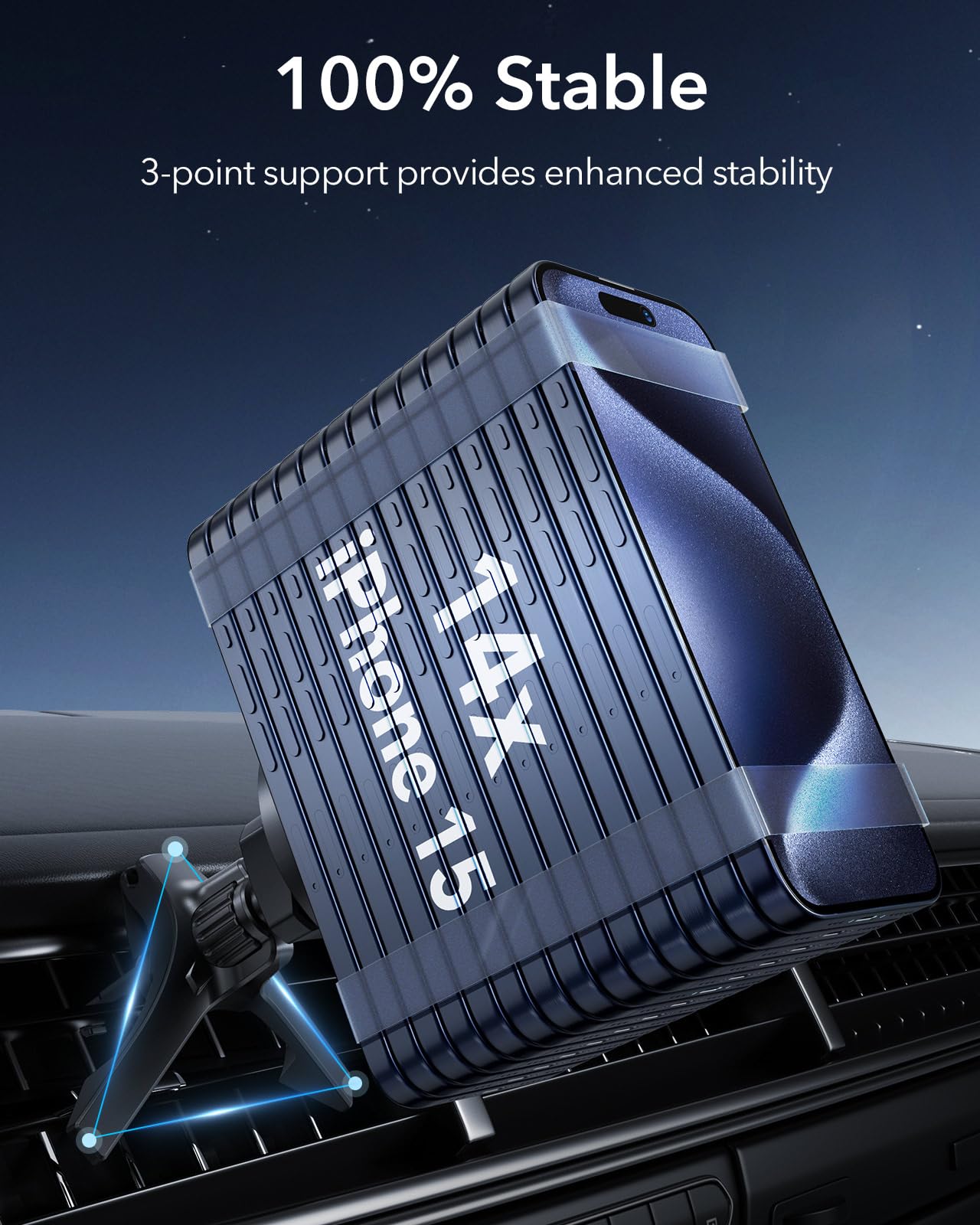 • Ultra-Strong Magnets: high-grade N52H magnets with a holding force of 2,300 g keep your phone securely in place; combine with ESR HaloLock case for the strongest magnetic lock; wireless charging not supported