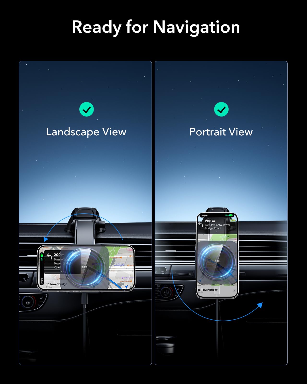 • Secure Magnetic Lock: powerful ring of magnets with 1,600 g of holding force keeps your phone securely in place, even on bumpy roads; an official MagSafe case or ESR magnetic case is recommended for rough terrain