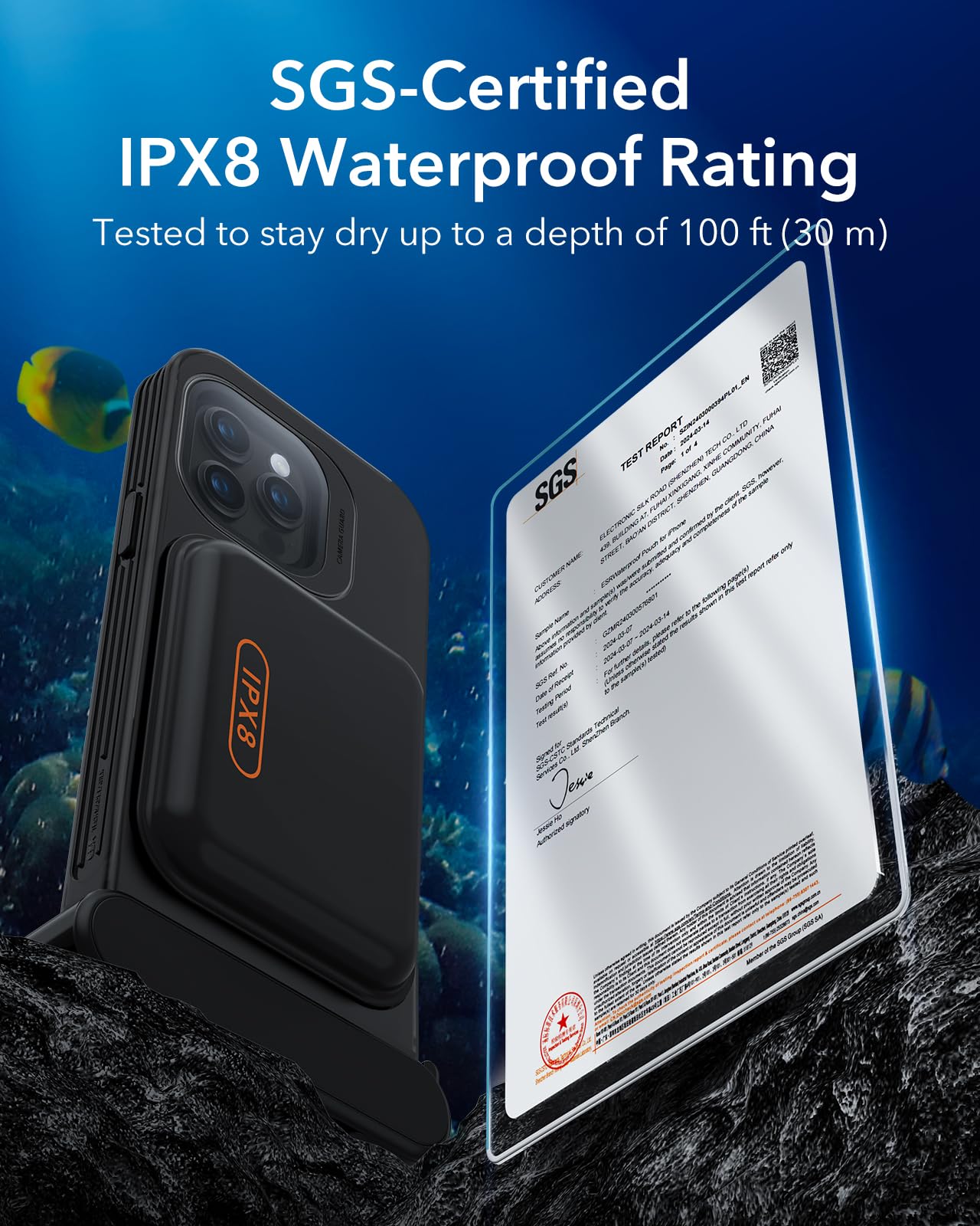 • SGS-certified and IPX8 waterproof, tested to remain dry at depths up to 100 feet (30 meters); ideal for beach outings, swimming, snorkeling, deep diving, and a must-have accessory for cruise ship vacations