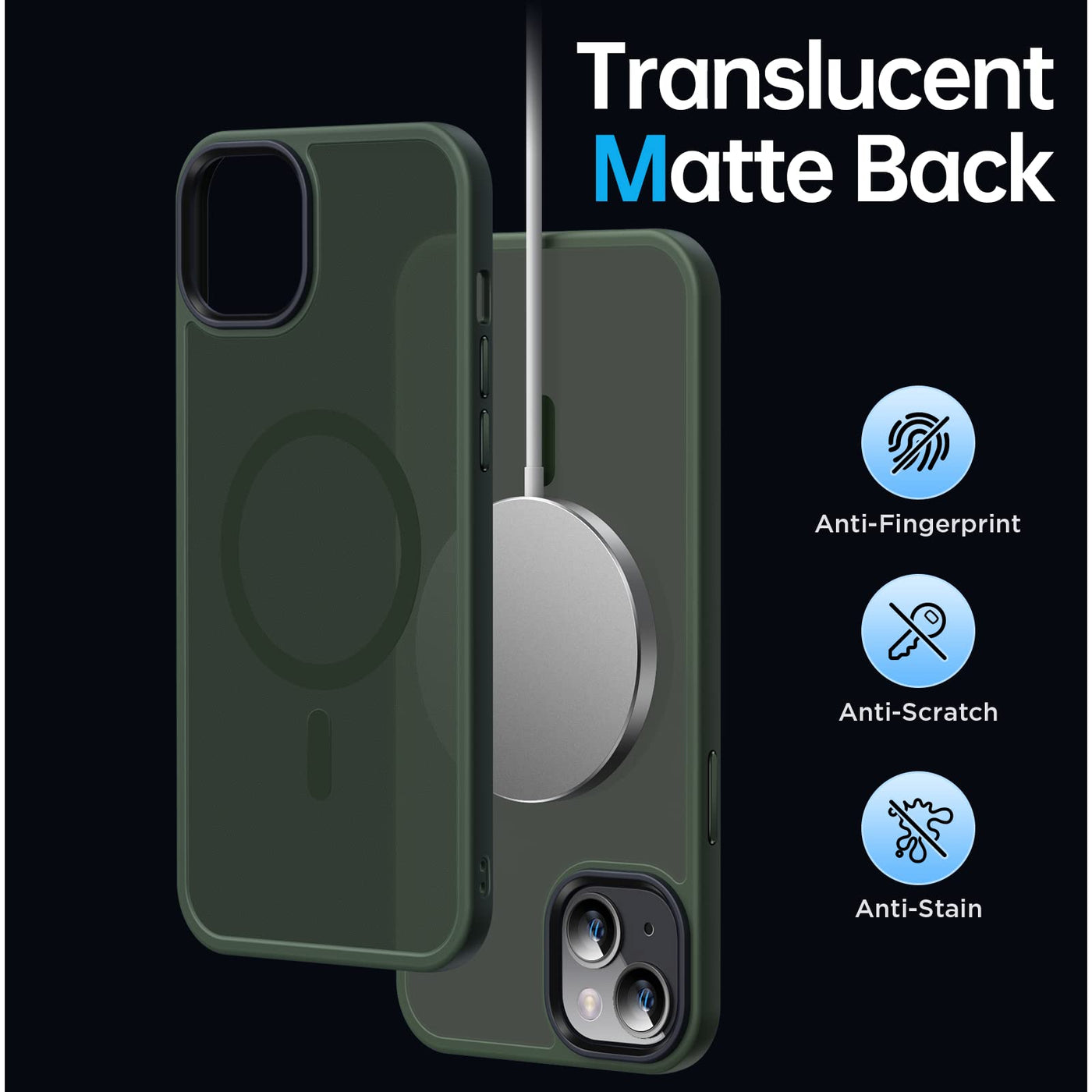 Faiono Magnetic iPhone 13 Case & iPhone 14 Case for MagSafe [10FT Military Grade Protective] Slim Translucent Matte Back Silicone Edge for iPhone 13 / iPhone 14 Phone Case (6.1"), Alpine Green