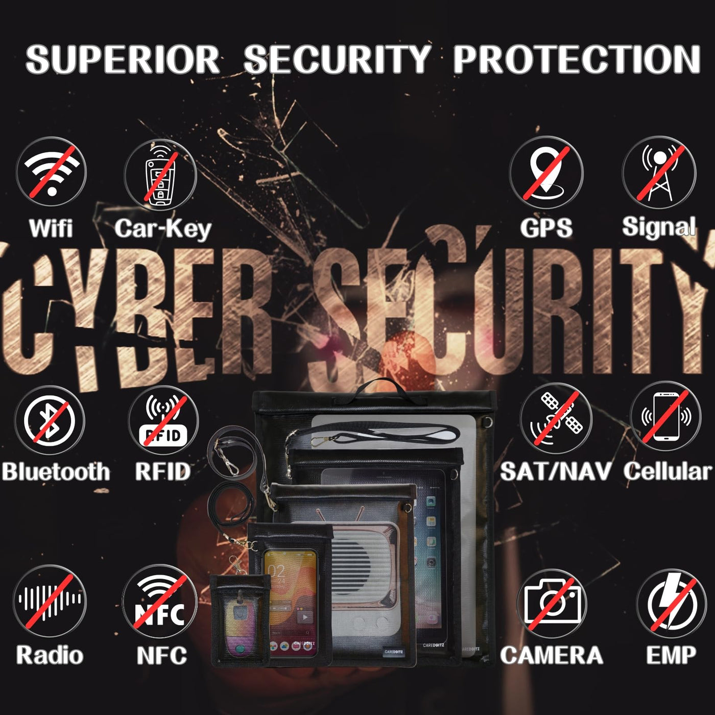 - SUPERIOR SECURITY PROTECTION FARADAY BAGS - Crafted from high-quality, silicone-coated fiberglass and super-shielding metallic fiber, our Faraday cages effectively block a range of signals, including call data, cellular, Bluetooth, NFC, WiFi, GPS, RFID, car key signals, radio signals(excluding two way radios and walkie talkie), EMP, etc. With our high-quality Faraday bag EMP proof, consider it a reliable partner for safeguarding your possessions.