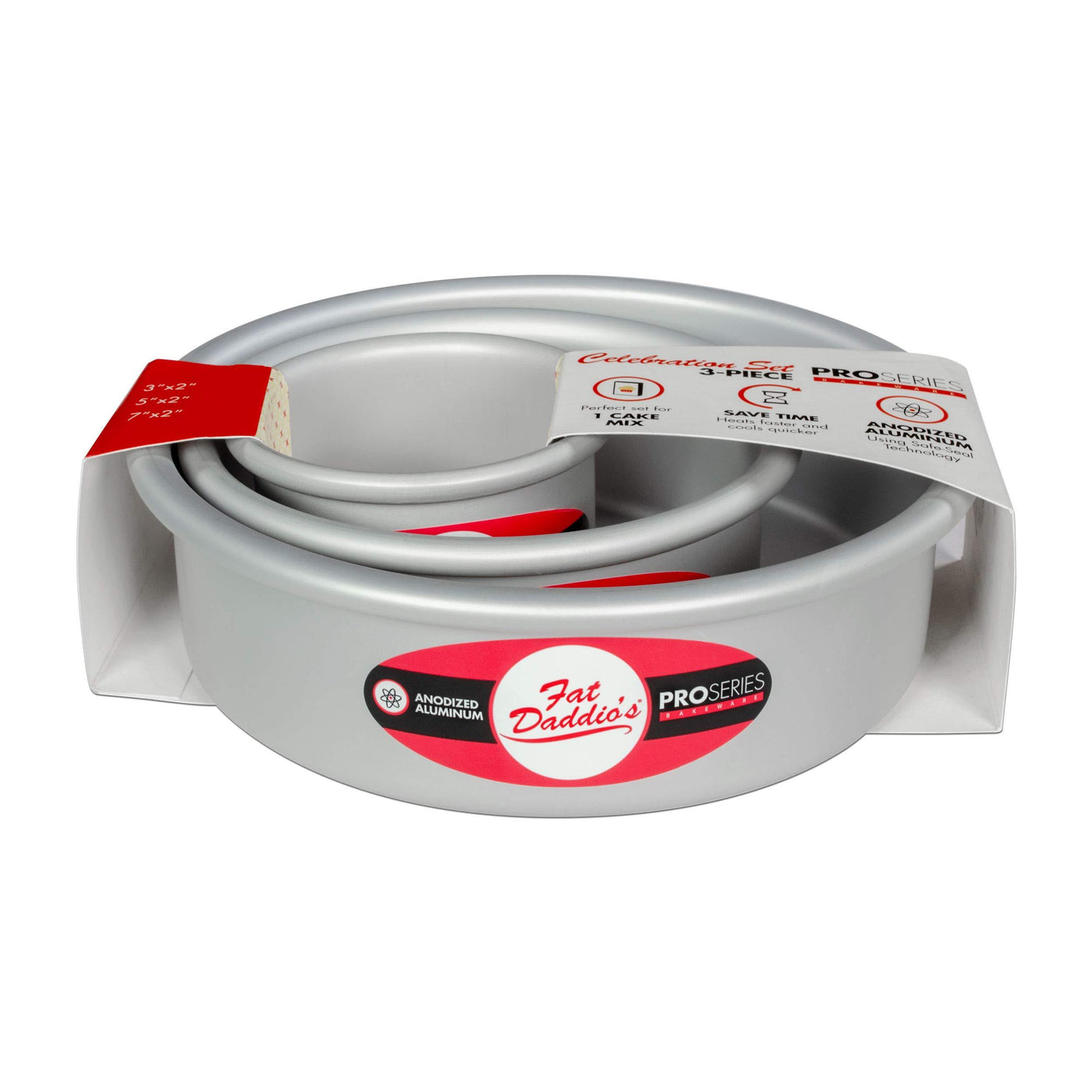 Fat Daddio's Anodized Aluminum Round Cake Pan Celebration Set, Set of 3, Silver, 1-Box Mix