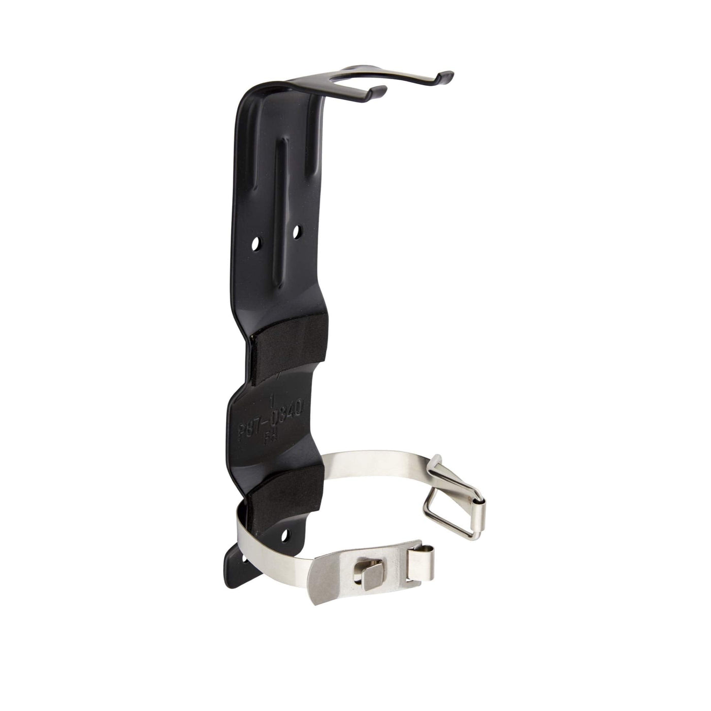 This First Alert BRACKET2 heavy duty fire extinguisher mounting bracket is designed for use ONLY with First Alert Models FE5GR (REC5), FE10GR (GARAGE10) and FE1A10GR (HOME1/MARINE1). This bracket is UL listed and has a durable metal construction with corrosion resistant coated finish and stainless steel straps..