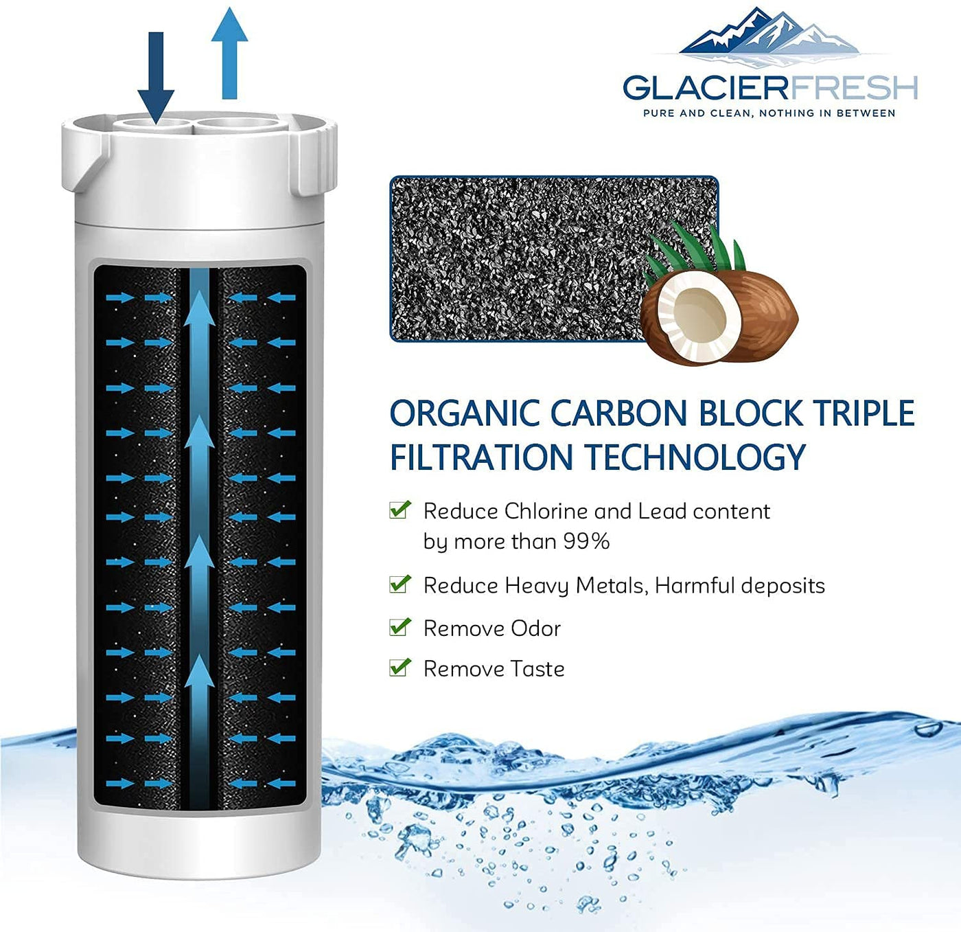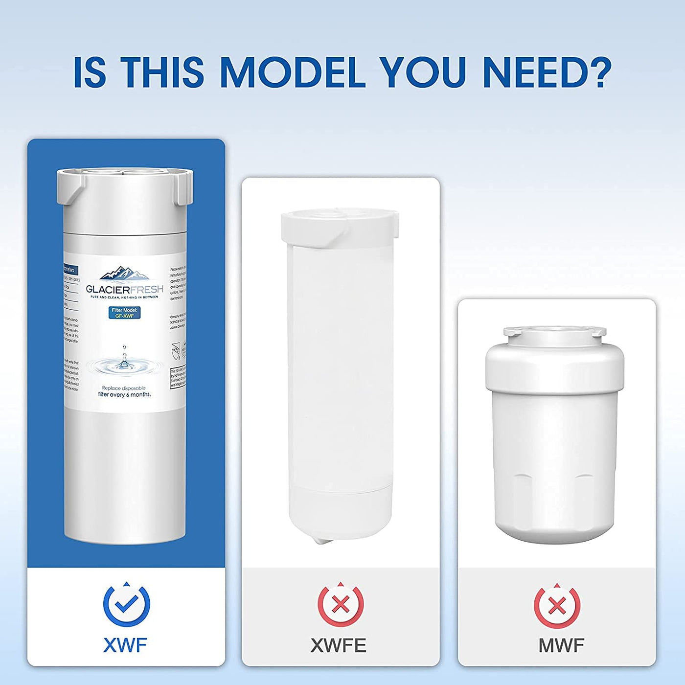 - GLACIER FRESH GF-XWF Filter Statement: The materials and construction are in compliance with the NSF42 standard. After our laboratory test, GF-XWF refrigerator water filter removes 97.9% chlorine and improves waters smell and taste. For more details about NSF information, please enter certified model number "GF-XWF" or manufacturer "Ningbo Pureza Technology, LLC" on the NSF database.