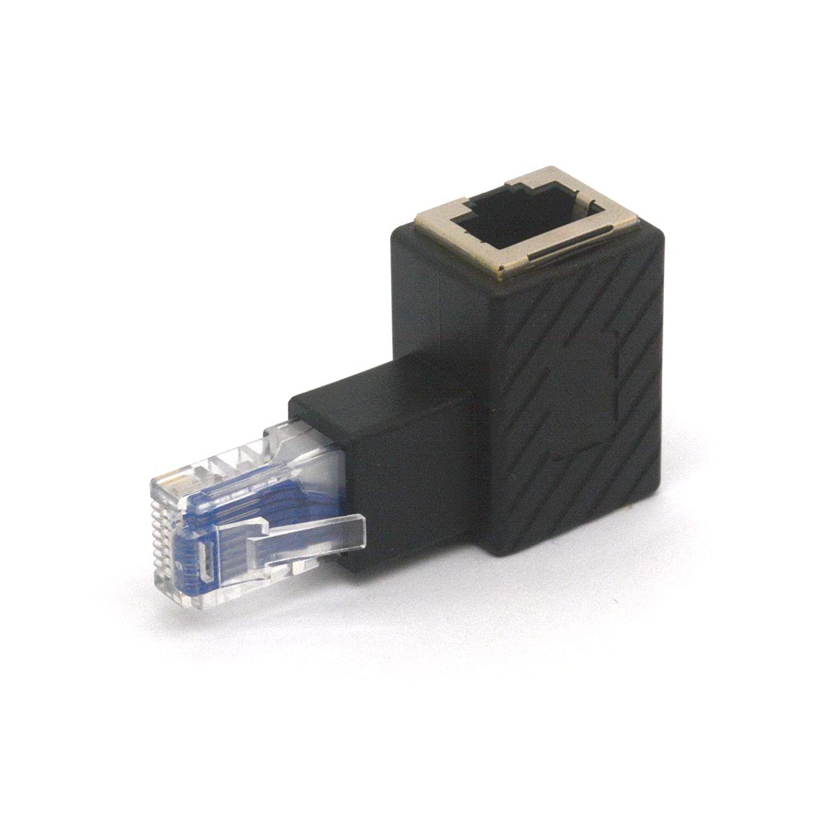 - 90 degree angle RJ45 adapter is convenient to use RJ45 port to connect network equipment. The ethernet adapter can be used in narrow spaces like behind furniture or TV, prevent the Ethernet cable from bending and damage.