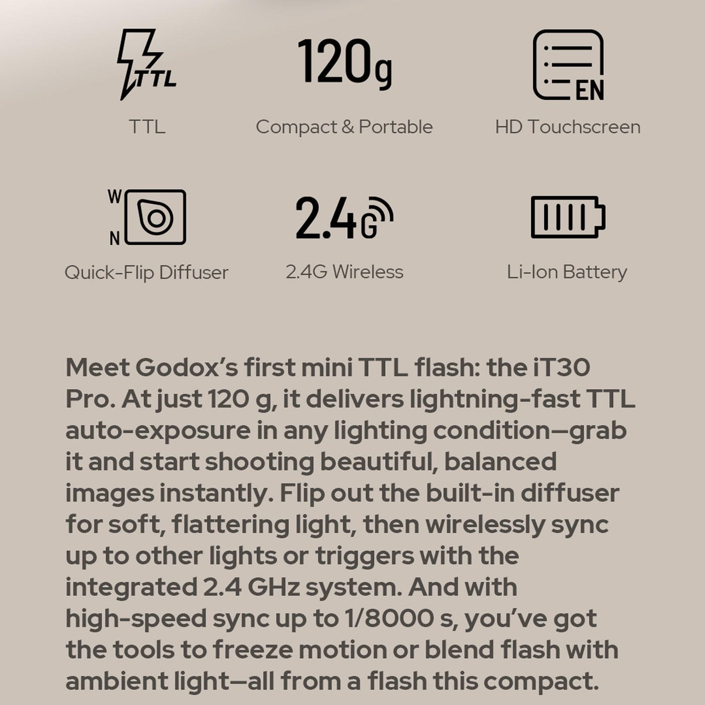 Godox Mini iT30Pro S iT30 Pro S for Sony TTL Flashlight Wireless Touch Screen Portable Flashlight HSS 1/8000 Second Compatible with Mirrorless Cameras External Flash Compatible for Sony