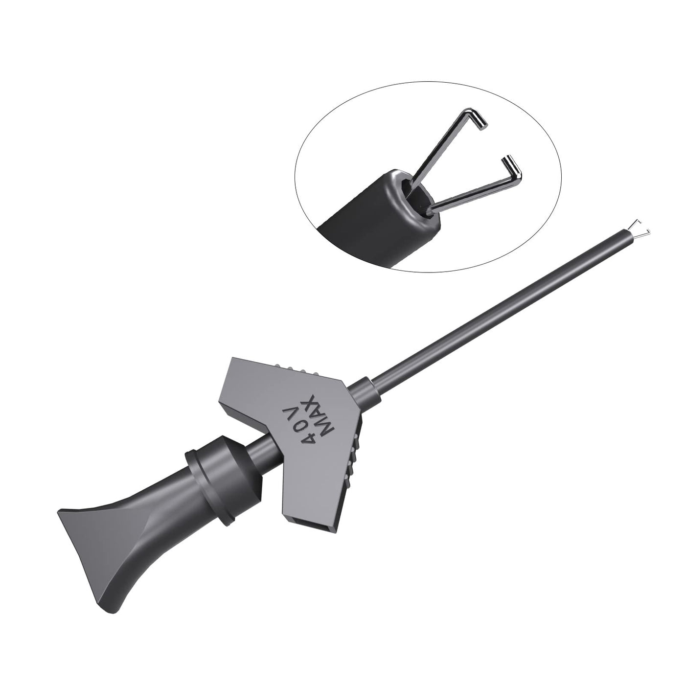 - Minigrabber test hook adopts high quality durable and super conductive performance materials. The front end of the hook is retractable with a spring, so objects can be firmly hooked.