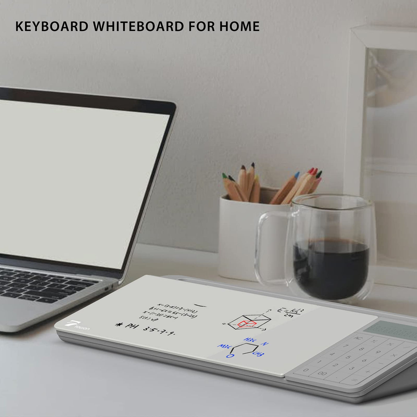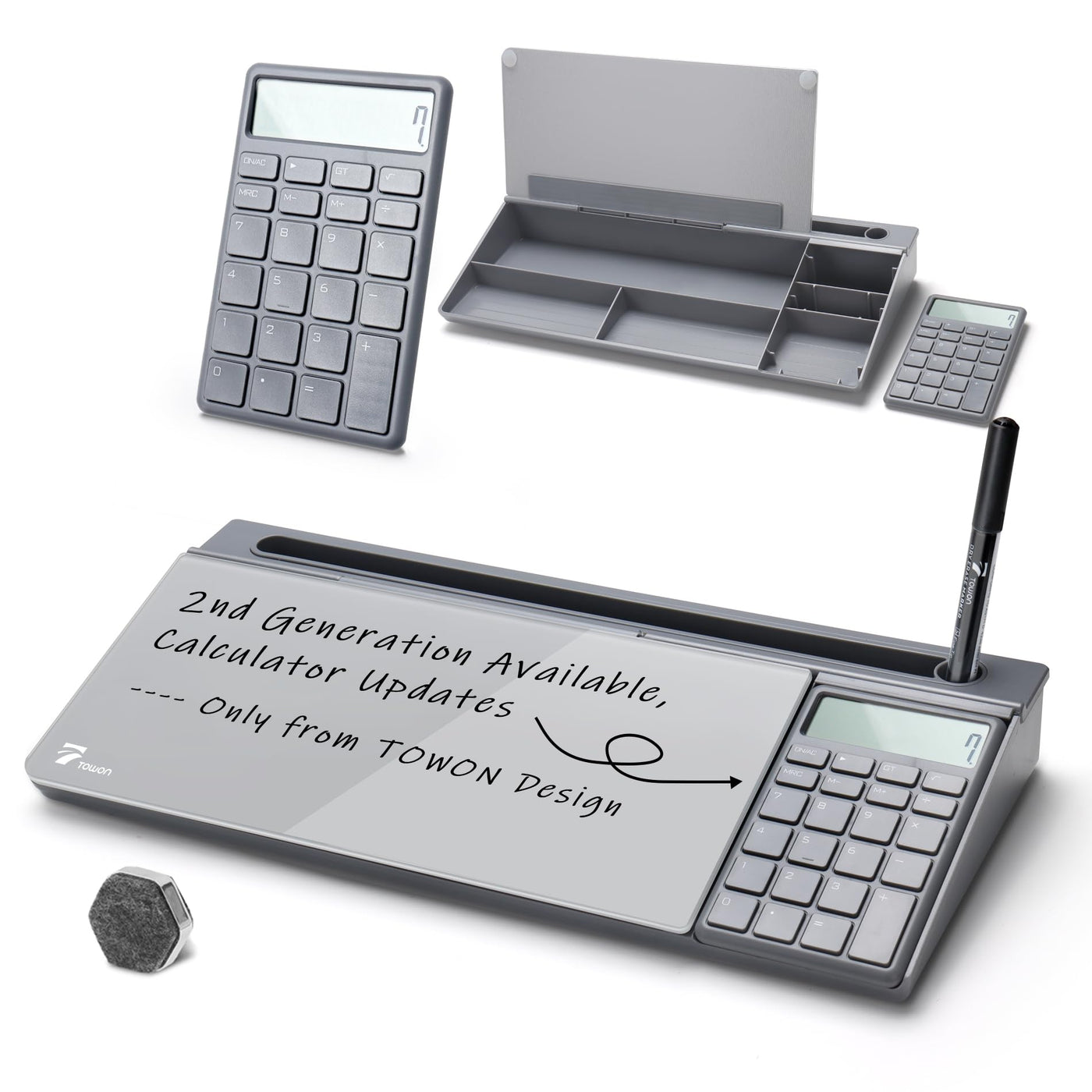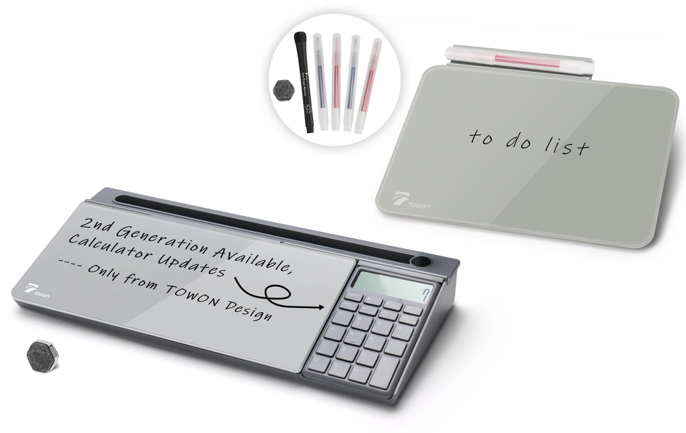 TOWON Desktop Glass White Board with Basic Calculator & Small Desktop Dry- Erase Pad Glass Whiteboard, Gray