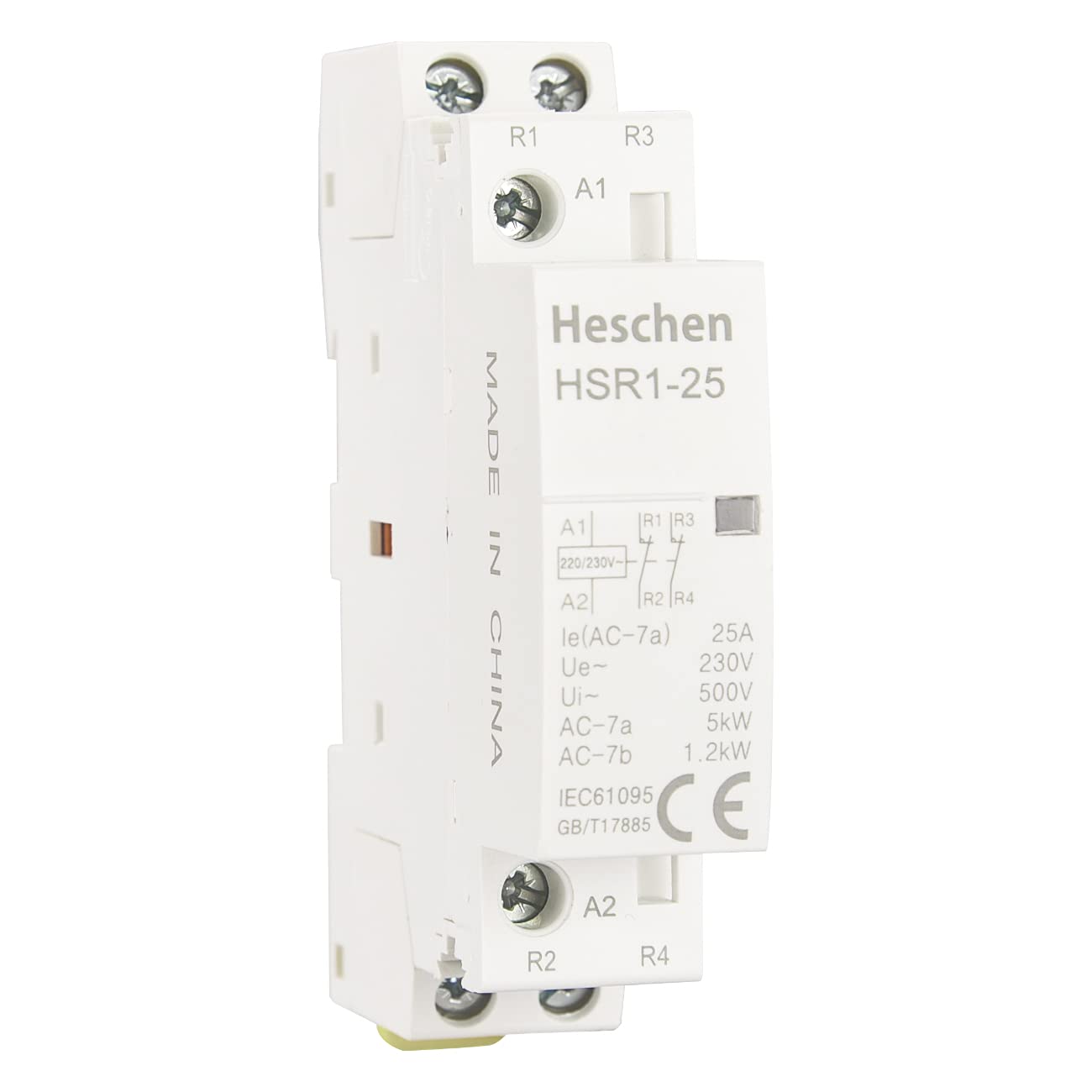 Heschen Household AC Contactor HSR1-25 2 Pin Normally Closed AC 220V/230V Coil Voltage 35mm DIN Rail Mount 1