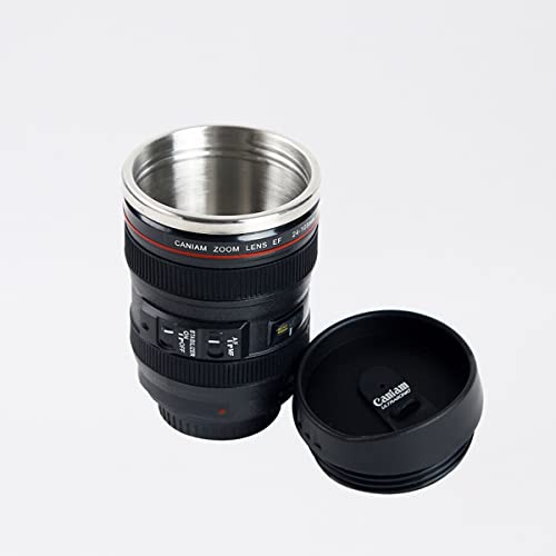 400ml Thermal stainless tumbler insulated travel mug Feature: Camera lens coffee mug Stainless steel liner and ABS shell outer Styled after EF24-105mm USM Lens Screw-top water outlet lid Food safe, BPA free