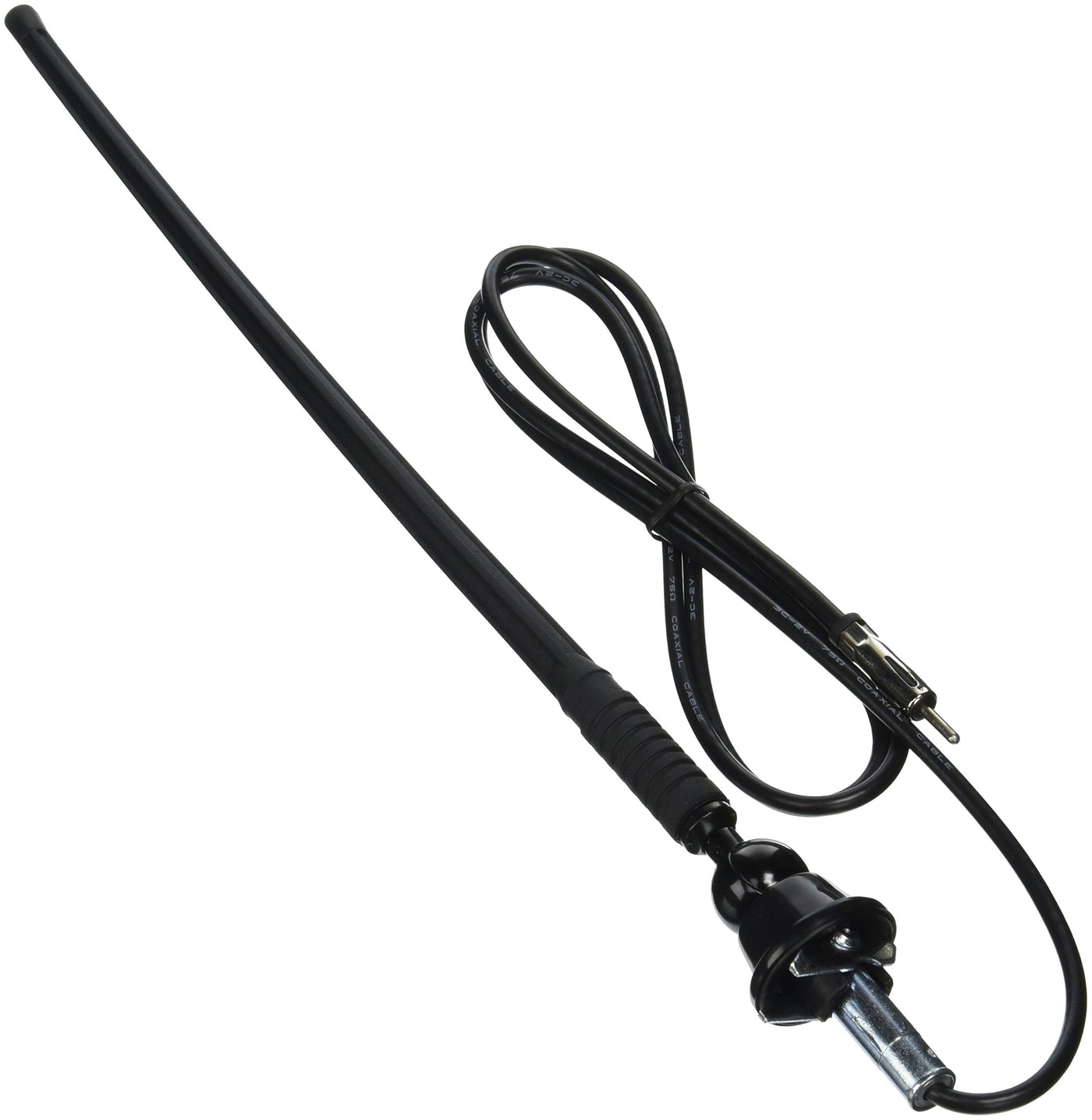 - 16" high from base. 60" cable. Antenna adjusts to 90 degree angle. Rubber Mast.