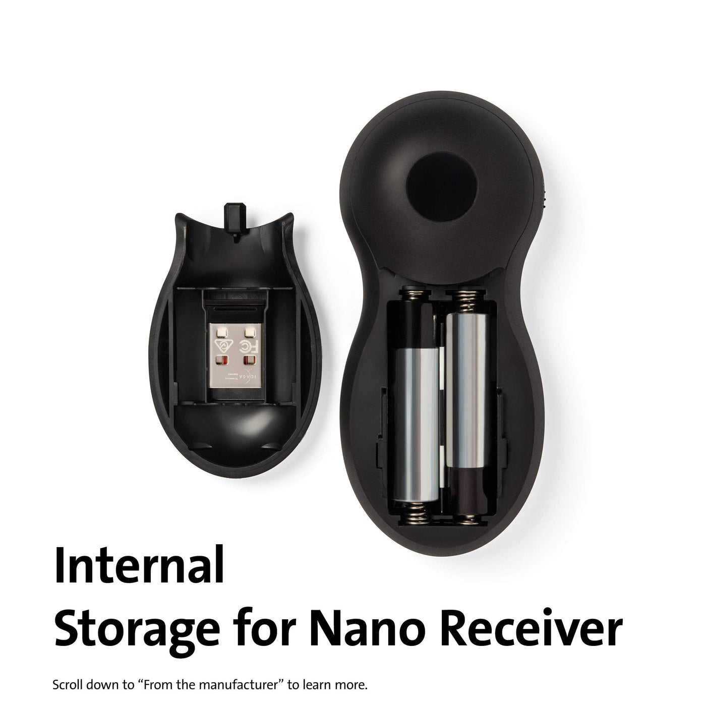 - Battery compartment also provides a handy internal storage space for the wireless USB nano receiver when not in use. Each receiver and presenter are uniquely paired to prevent interference.
