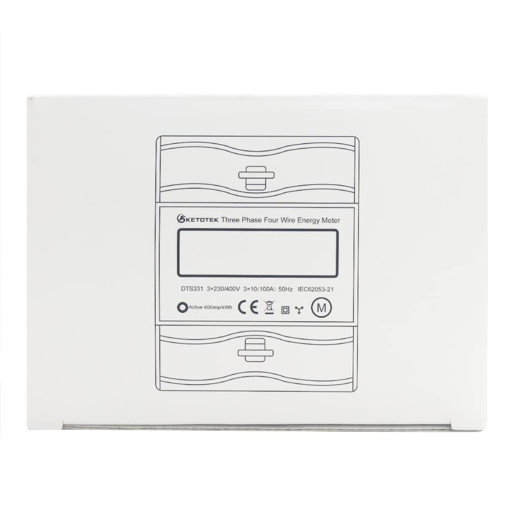 KETOTEK 3 Phase Electricity Meter AC Ampere Volt Power Energy Monitor Top Hat Din Rail Bidirectional Wattmeter Power Consumption Input Output kWh Three-phase Meter 3x230V/400V 10(100) A 50/60Hz DTS331