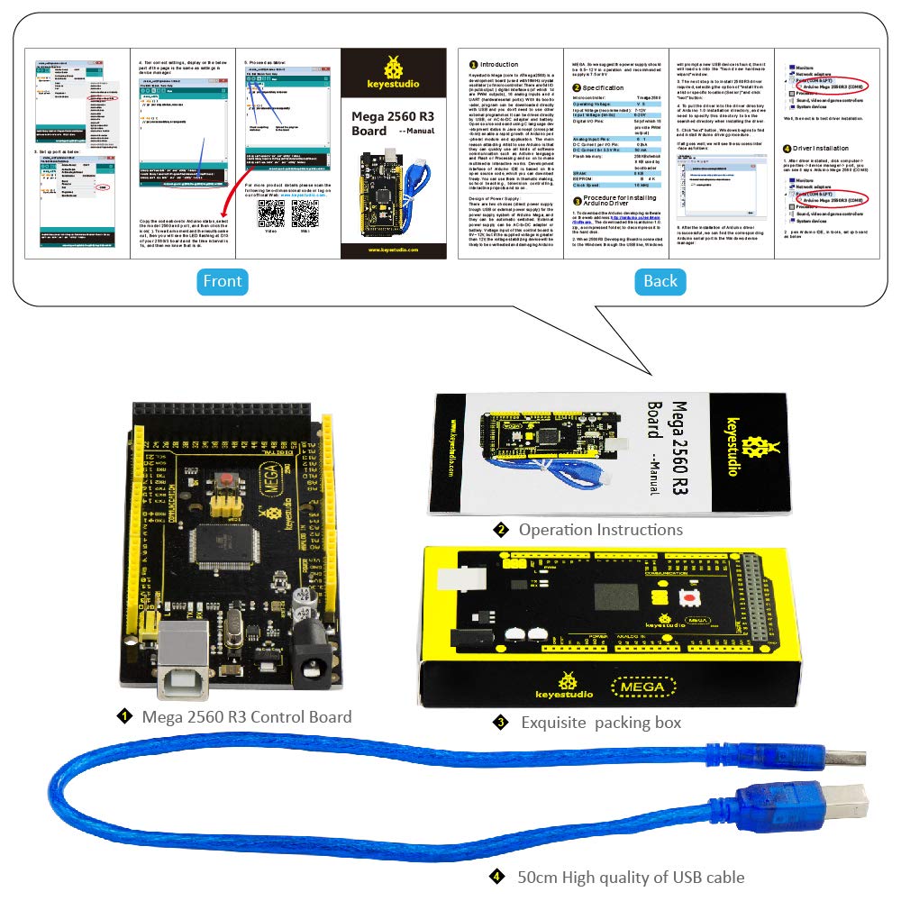 KEYESTUDIO Mega 2560 R3 Board for Arduino Projects with USB Cable