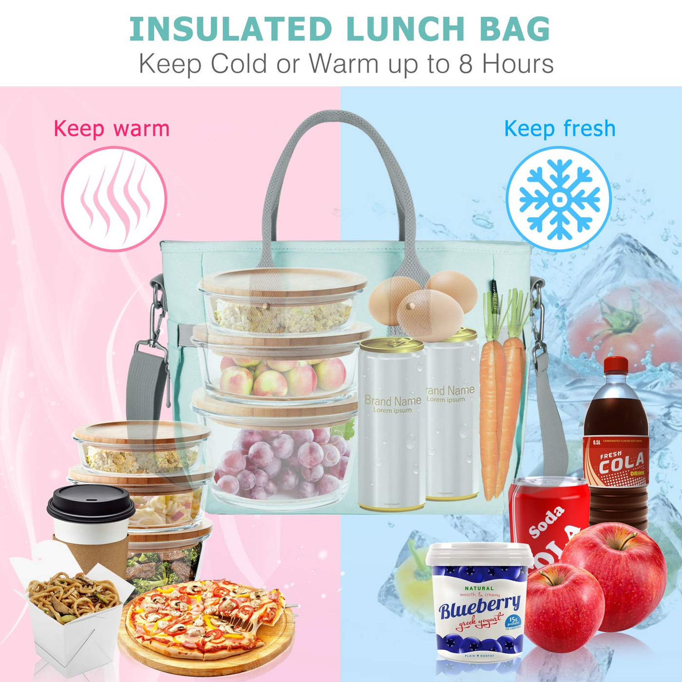 - EXCELLENT INSULATION: Thanks to upgrade liner and technology Keeps your food cold /warm /fresh up to 14 hours, is longer than average lunch bags. You can enjoy perfect tasting meal wherever you are. actually it's a good outdoors-companion.