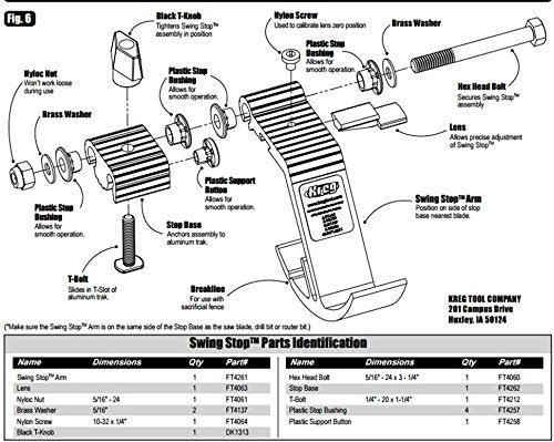 Add repeatable accuracy to your miter saw, band saw, table saw fence, router table, and more with this versatile Swing Stop. It holds your desired measurement precisely, and swings out of the way easily when you want to cut without it. The Swing Stop features a precision lens cursor with a hairline indicator that allows you to set dimensions exactly. Plus, the cursor is adjustable so you can easily fine tune the Swing Stop to your tool. When you want to use the Swing Stop, it stays where you set it thanks to its rugged aluminum construction and high-quality bushings that prevent deflection. When you want the stop out of the way, simply swing it up or slide your board into the front of the curved foot, and the Swing Stop will pop up out of the way for an unobstructed cut. The foot also has a small breakaway section that allows you to modify it easily to work on a fence that has an auxiliary face. The Swing Stop is designed to work with Kreg Top Trak and Heavy-Duty Trak, so you can build your own fence, install the track, and use the stop. That gives you options and means you can easily use the Swing Stop on many types of tools. The stop simply drops into the track from the topside, allowing it to be quickly removed and repositioned. From the Manufacturer Our patented Swing Stop easily sets the distance between the end of the board and the saw blade for amazing cutting accuracy and repeatability. The curved design of the Swing Stop allows a board to bypass the stop automatically by simply sliding the board into the stop’s face. The Swing Stop features an adjustable lens cursor much lick that found on a high-quality table saw rip fence that can be “zeroed out” to assure pinpoint accuracy.