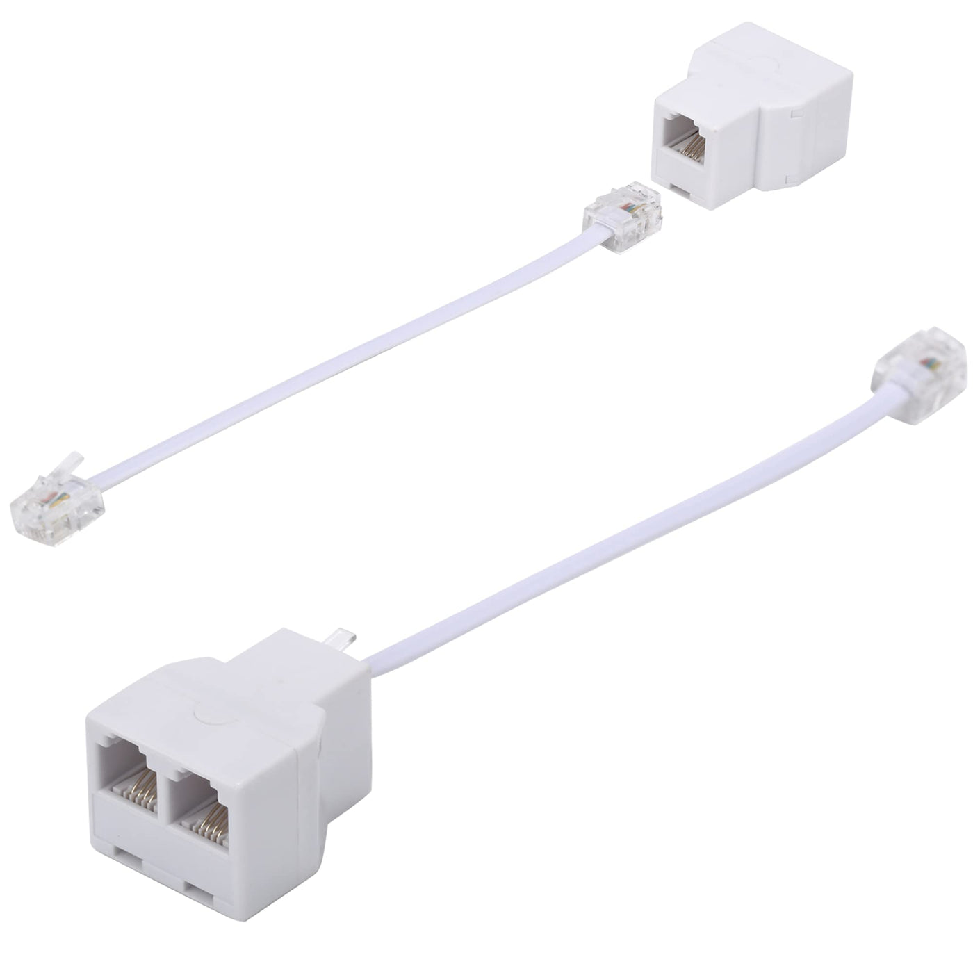 LanSenSu Phone Line Splitter,Telephone Splitter,with RJ11 6P4C Plugs,Suitable for Telephone,Fax Machine,White 2-Pack 2Pack-White White