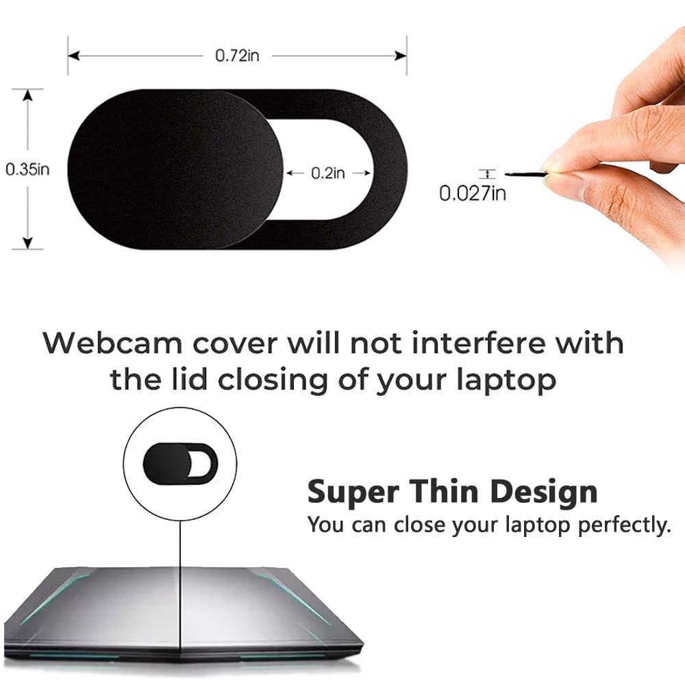 - Super Slim and DurableMini-size computer camera cover is only 0.027 inches in thickness which will not interfere with the closing lid of your laptop. The cell phone camera cover is made of premium high-strength ABS plastic that could provide long-term reliable protection for your privacy.