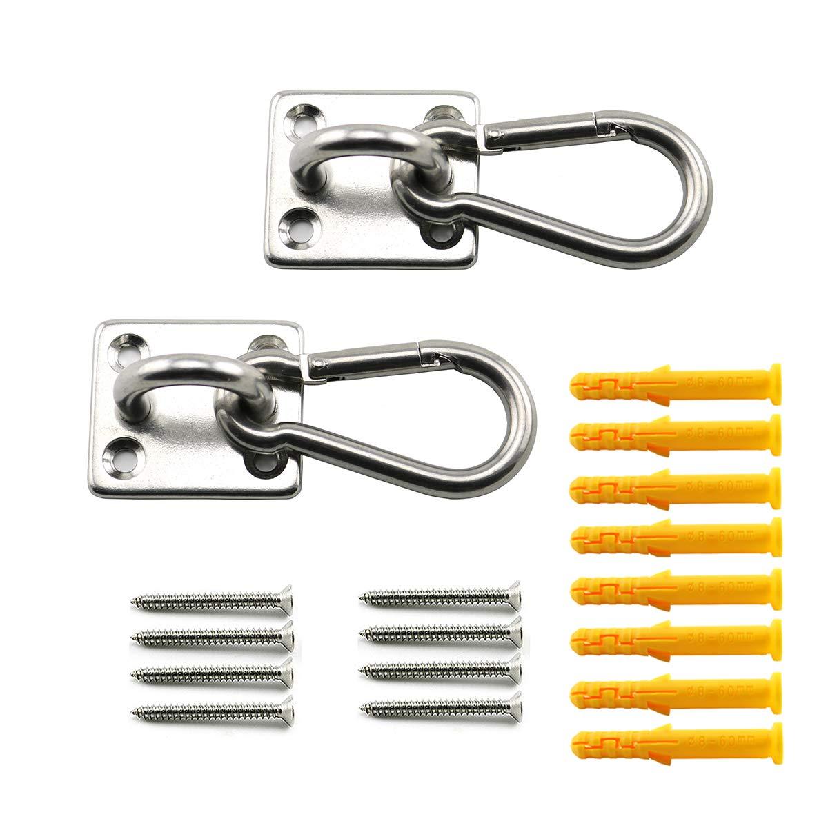 Lind Kitchen 2 Set M8 Ceiling & Wall Mount Hanging Hardware Fitting Set 304 Stainless Steel Heavy Duty Square Pad Eye Plate + Snap Hook for Yoga Hammock Chair Swings Marine Yacht Boat Accessories