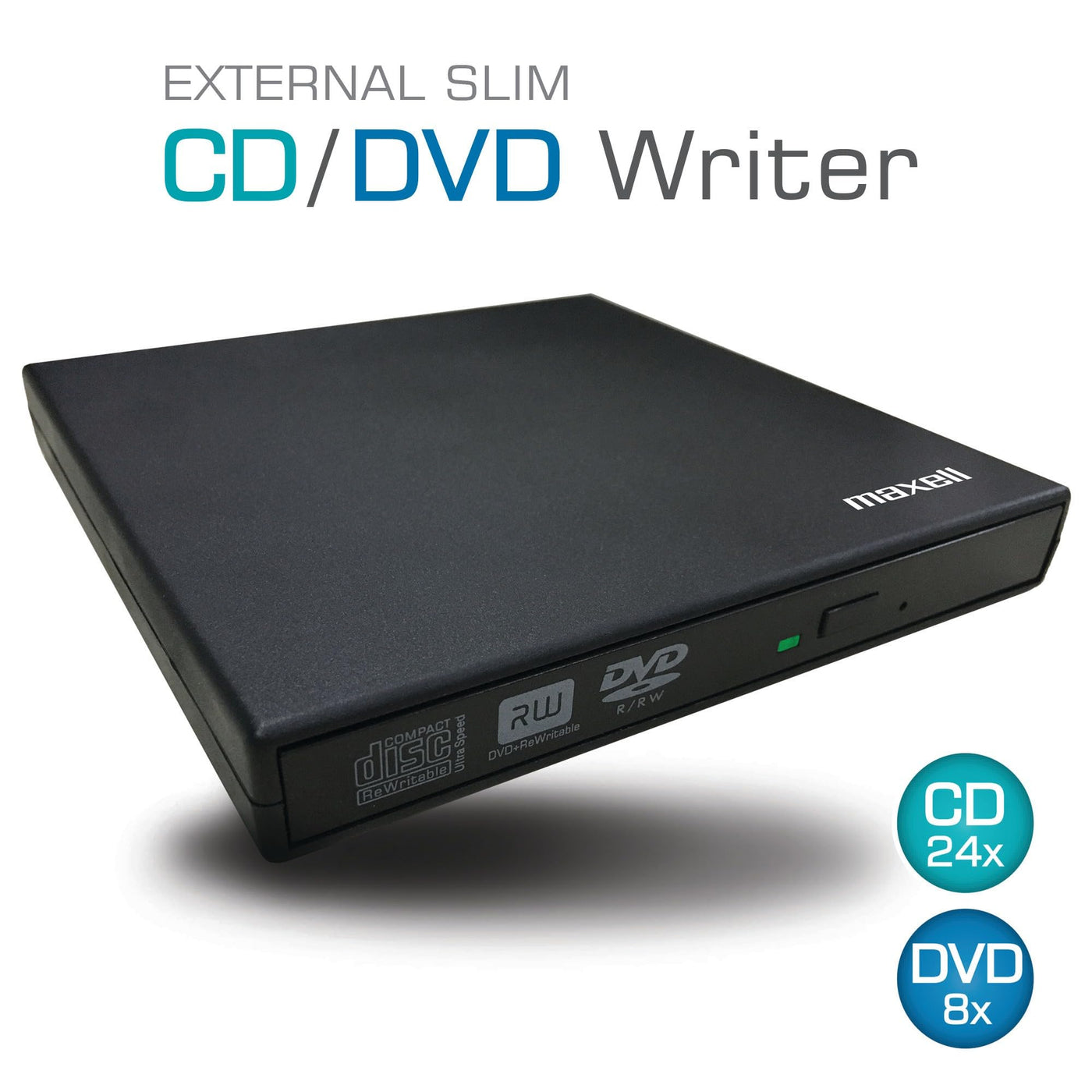 - If you want to put your favorite music or movies onto a disc, use the Maxell CD/DVD External USB 2.0 Reader/Writer with your laptop. The external drive features a reliable USB 2.0 interface and works with 80 mm and 120 mm discs.