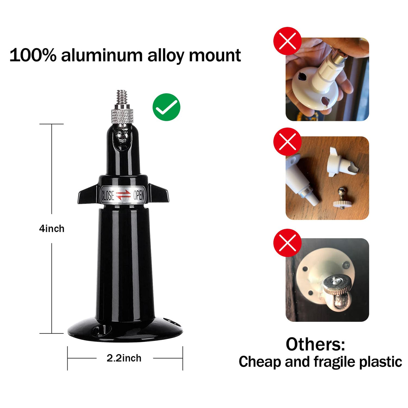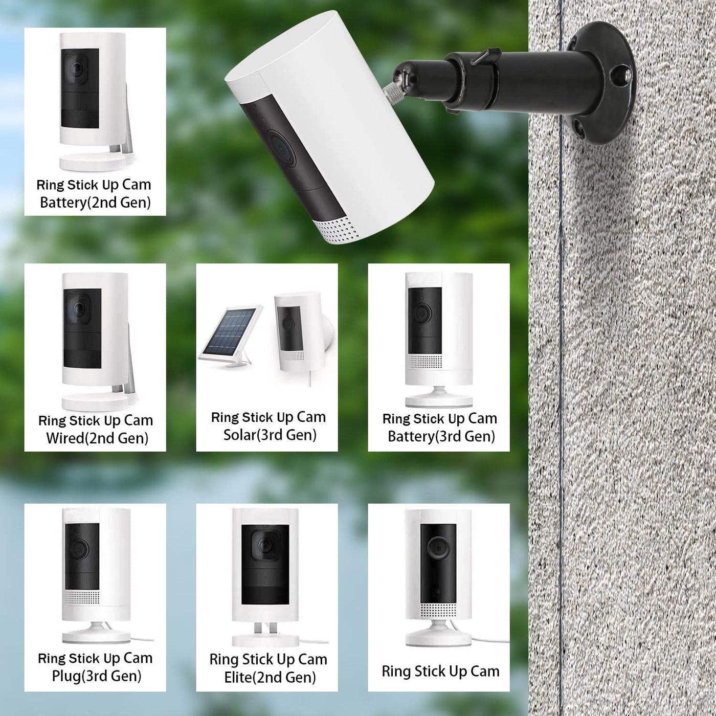 • Broad Compatibility:Perfectly compatible with Ring Stick Up Cam and Ring Indoor Cam, and compatible with Arlo/Arlo Pro/Arlo Pro 2/Arlo Pro 3/Arlo Pro 4/Arlo Ultra/Arlo Ultra 2/Arlo Go/Wyze cam/Eufy Cam/Roelink Argus and other cameras with standard 1/4 threaded holes.