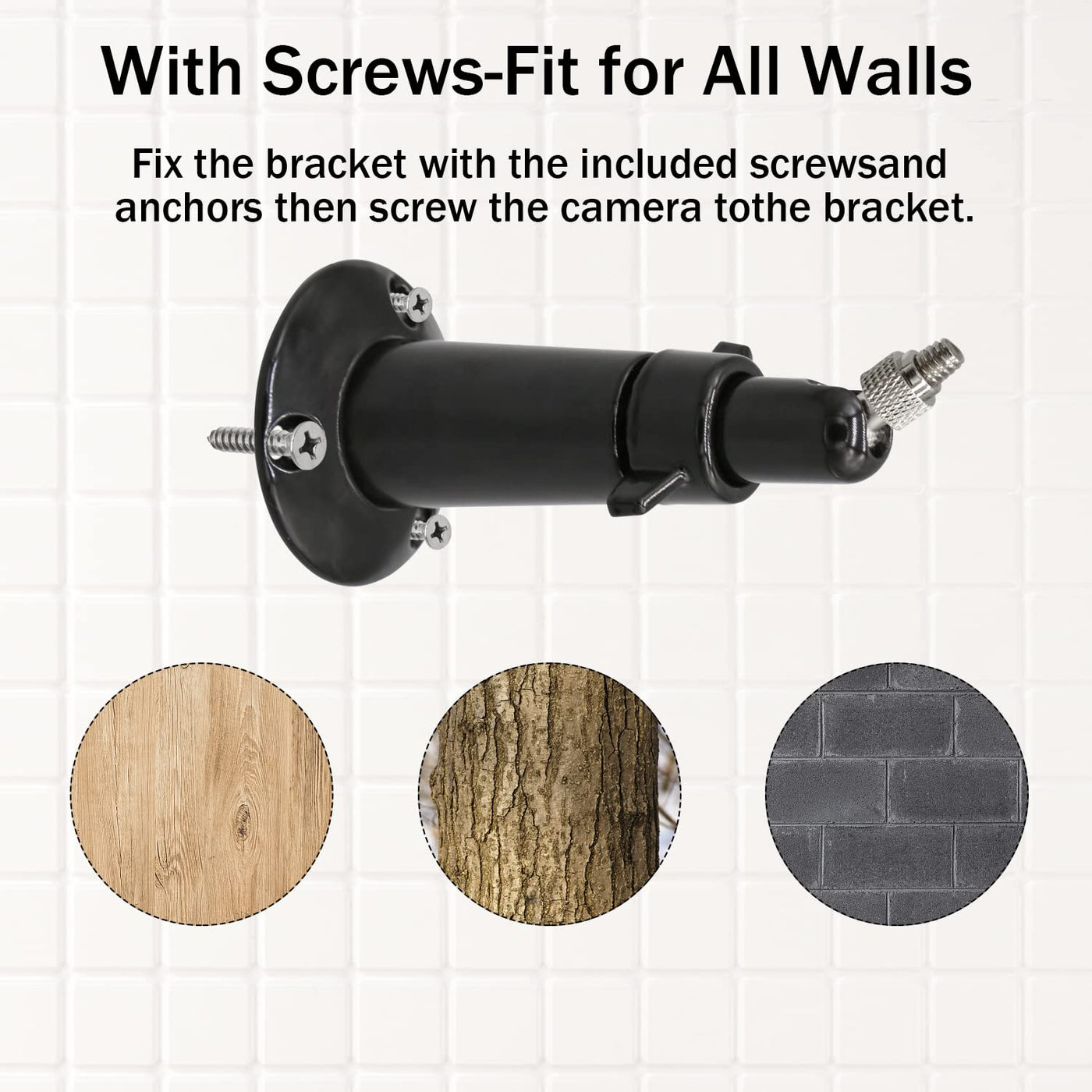 (Metal 2 Pack) 360 Degrees Adjustable Security Wall Mount for Ring Stick Up Cam/Ring Indoor Cam/Wyze Cam/Eufy Cam/Arlo Cameras, Fits All Cameras with Standard 1/4 Threaded Holes-Black