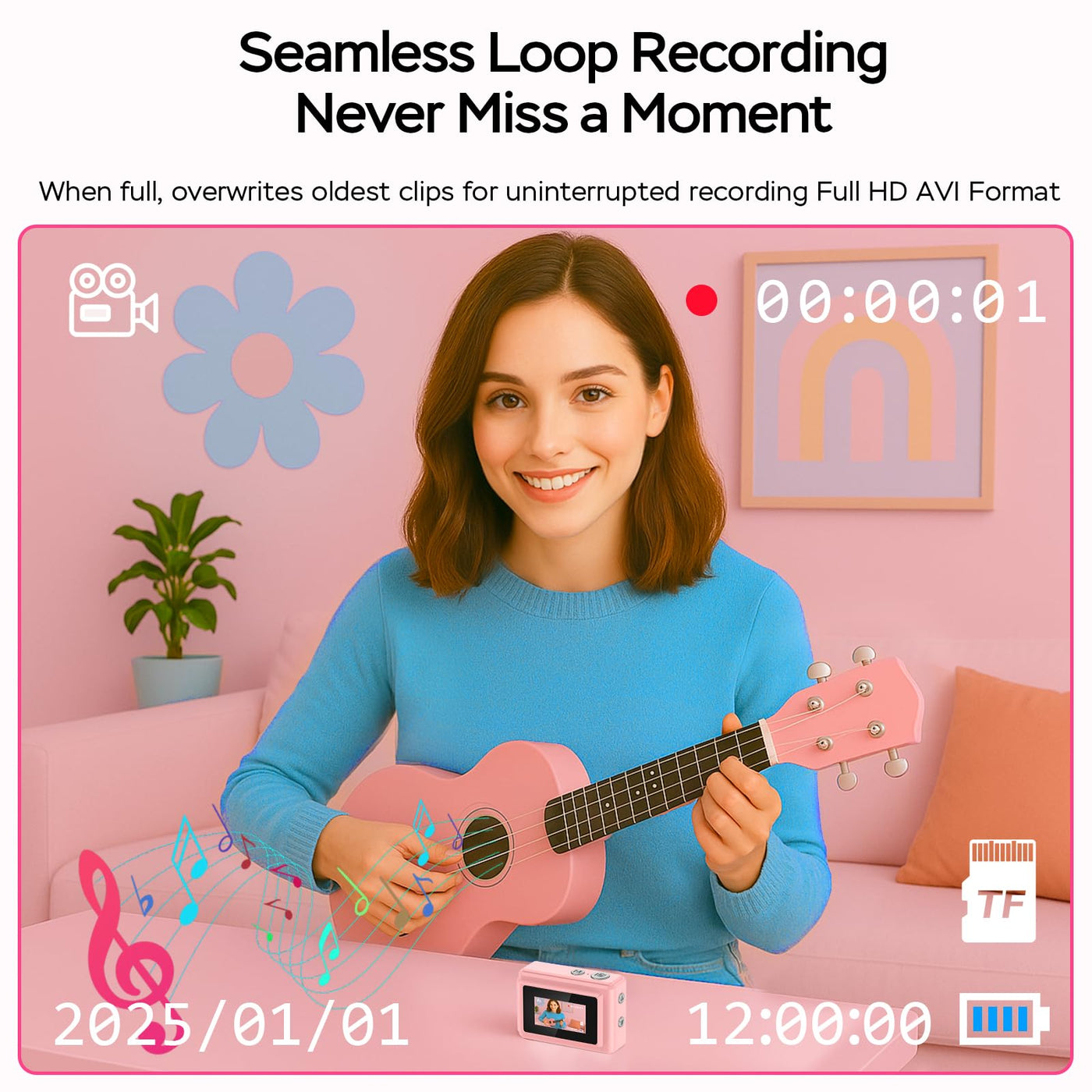 - Pro-Grade 1080P Video PerformanceCrisp 1080P video recording and a 0.96-inch screen ensure colorful, lifelike footage of people and events. Aluminum alloy speakers deliver clear audio, while the built-in flash enhances low-light photography - perfect for vibrant night markets or golden-hour landscapes.