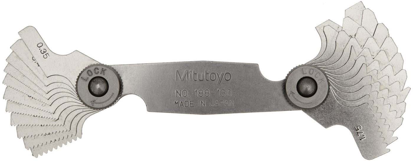 Mitutoyo 188-130, Screw Pitch Gage, 0.35mm to 6mm, 22 Leaves
