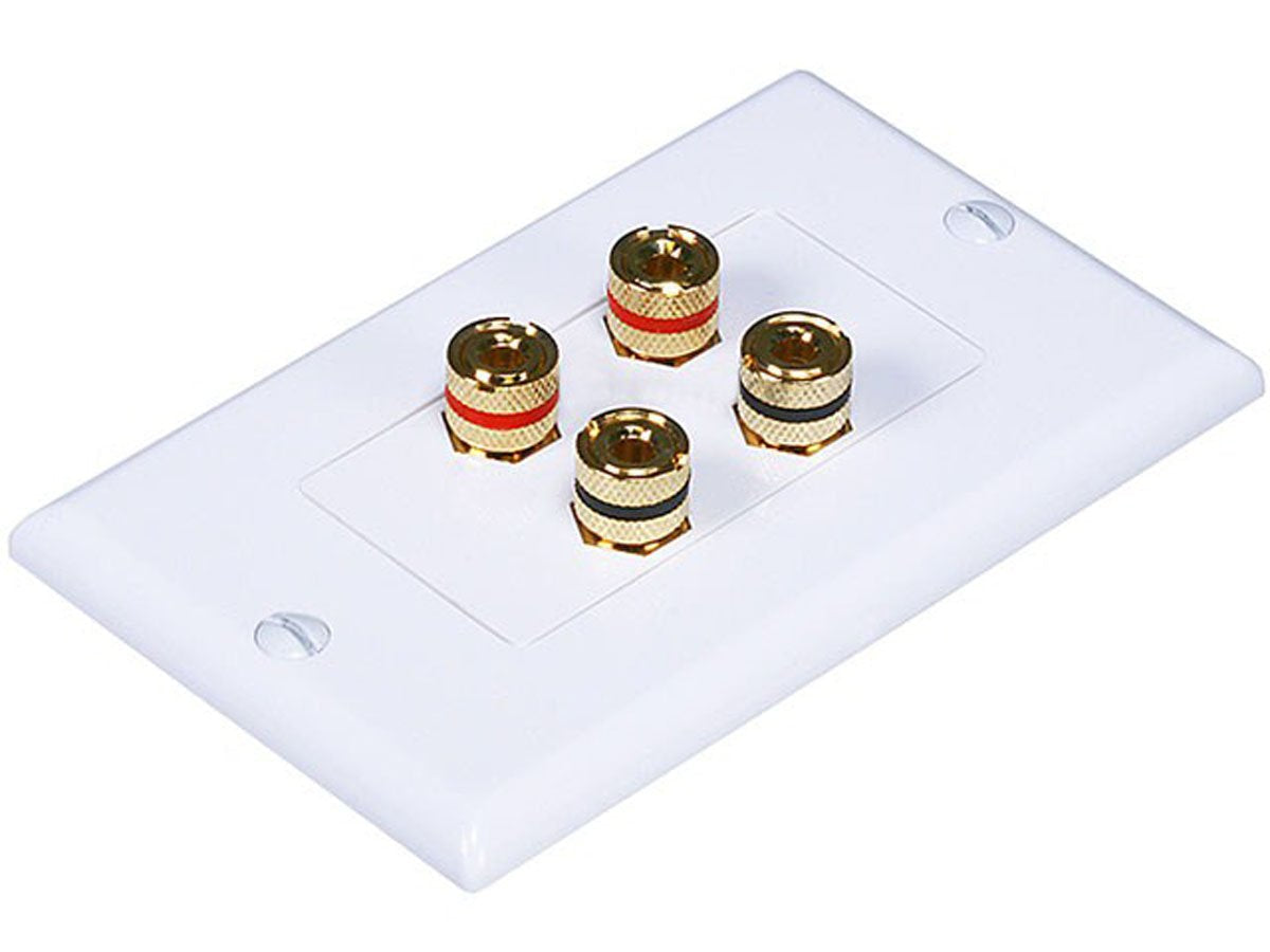 Wall plate with high quality gold plated binding posts for speakers. Can be use D with banana plugs spades or bare wire. Same Type of connector front and back
