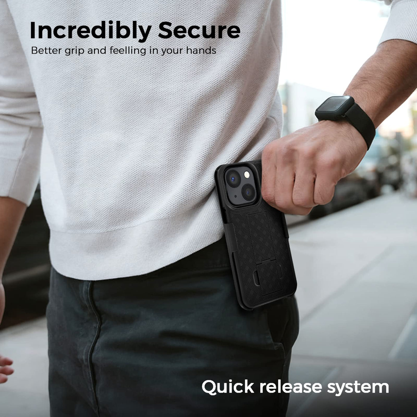 - THE RANGER SERIES Shell Holster Combo iPhone 14 case with stand is built to withstand anything you can throw at it, Raised bezels are designed for ultimate camera protection, protecting your screen and camera from scratches and scuffs, while allowing you the room to install the screen protector of your choice. Featuring non-slip groove edges, tactile easy-press TPU buttons, integrated port covers and a reinforced holster, this phone case is the real deal