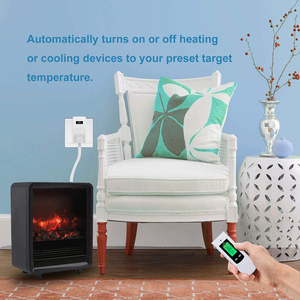 - Wireless Remote Control Remote adjustment and control, portable design for more convenient and practical. The control distance of the wireless thermostat socket reaches 66ft in the open area, allowing you to control heating or cooling more flexibly. This temperature controller socket 230V also supports temperature calibration.