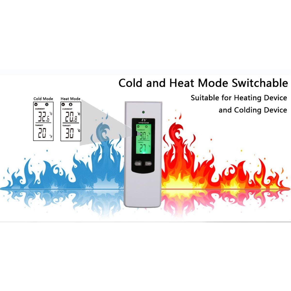 NASHONE Wireless Thermostat Socket Digital Temperature Controller with Heating and Cooling Mode. Remote control with temperature sensor and memory function LCD display with backlight (white) White