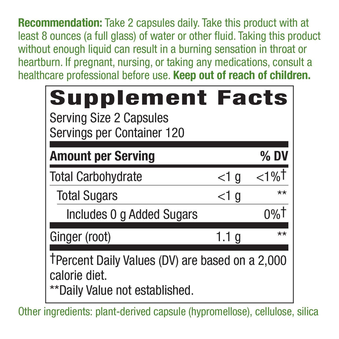 Nature's Way Ginger Root, Traditional Digestive Health Support*, 1,100 mg, 240 Vegan Capsules