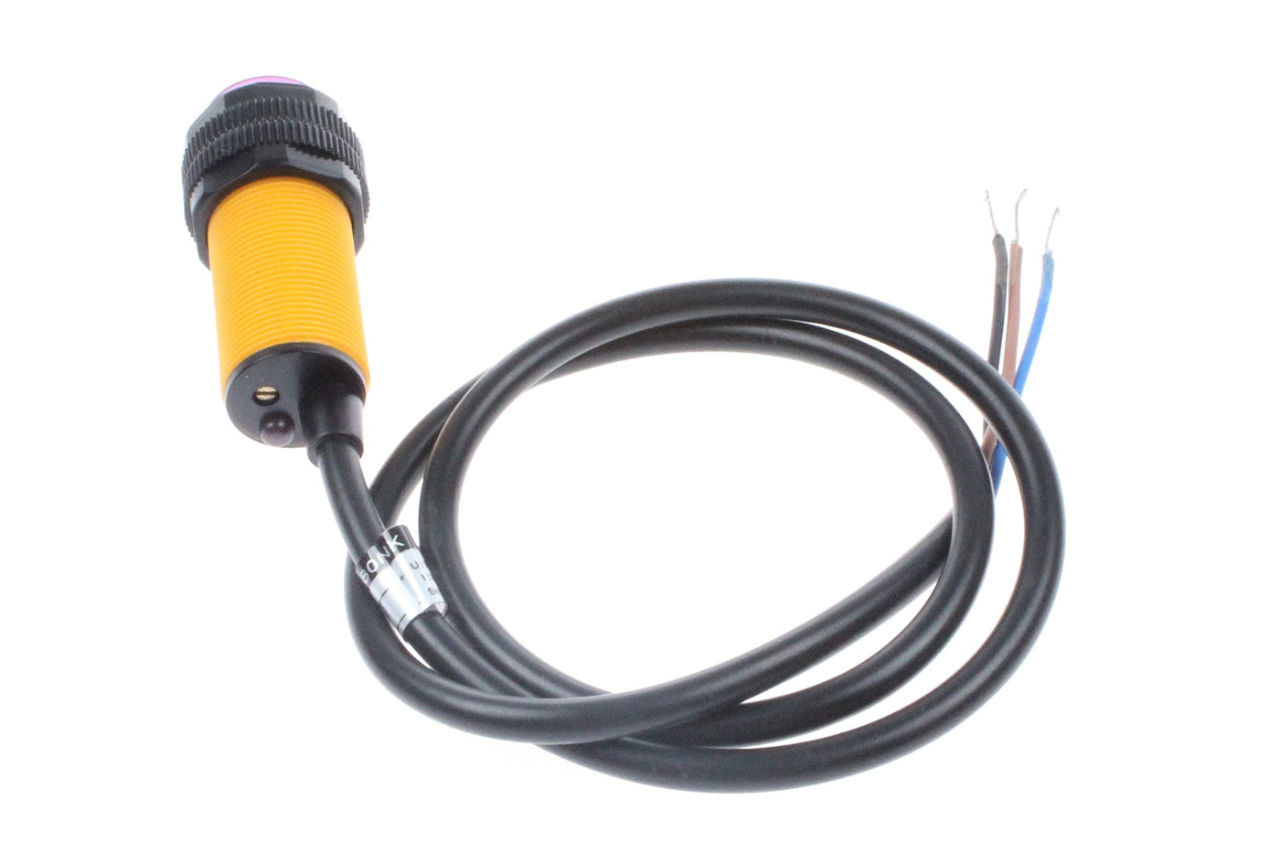 Photoelectric sensors (photoelectric switch) NPN normally open Model: E18-D80NK. Photoelectric switch E18 technical parameters: 1, The output current DC / SCR / Relay Control output: 100mA / 5V power supply 2, Current consumption DC <25mA 3, Response time <2ms 4, Point angle: ≤15 °, adjustable effective distance 3-80CM 5, Detect objects: transparent or opaque 6, Working environment temperature: -25 ℃ ~ + 55 ℃ 7, Standard sensing object: sunlight 10000LX less incandescent 3000LX the following 8, Case Material: Plastic Electrical Characteristics: U: 5VDC I: 100mA Sn: 3-80CM Size: Diameter: 17MM Sensor length: 45MM Cable Length: 45CM Weight 20 g Applications: 1. Production line cargo automatic counting equipment 2. Multifunctional reminder 3. Maze robot 4. Kitchen automation system 5. Security and anti-theft system Package Included: 1pcs E18-D80NK Adjustable Infrared Obstacle Avoidance Detection Sensor
