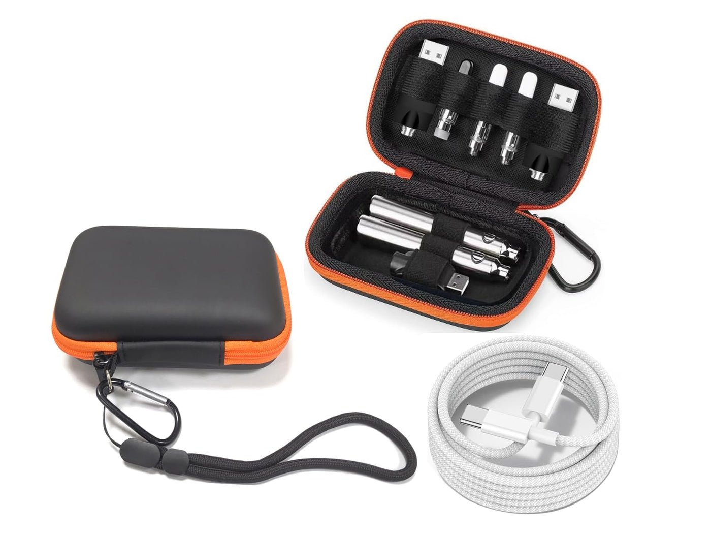 (Only Case) 510 thread charger Storage Case, Carrying Battery Bag Pen case Small Travel case, Organizer Pouch with Carabiner, for Battery pen style Pods-pen thread Battery Case (Bag+Cable)
