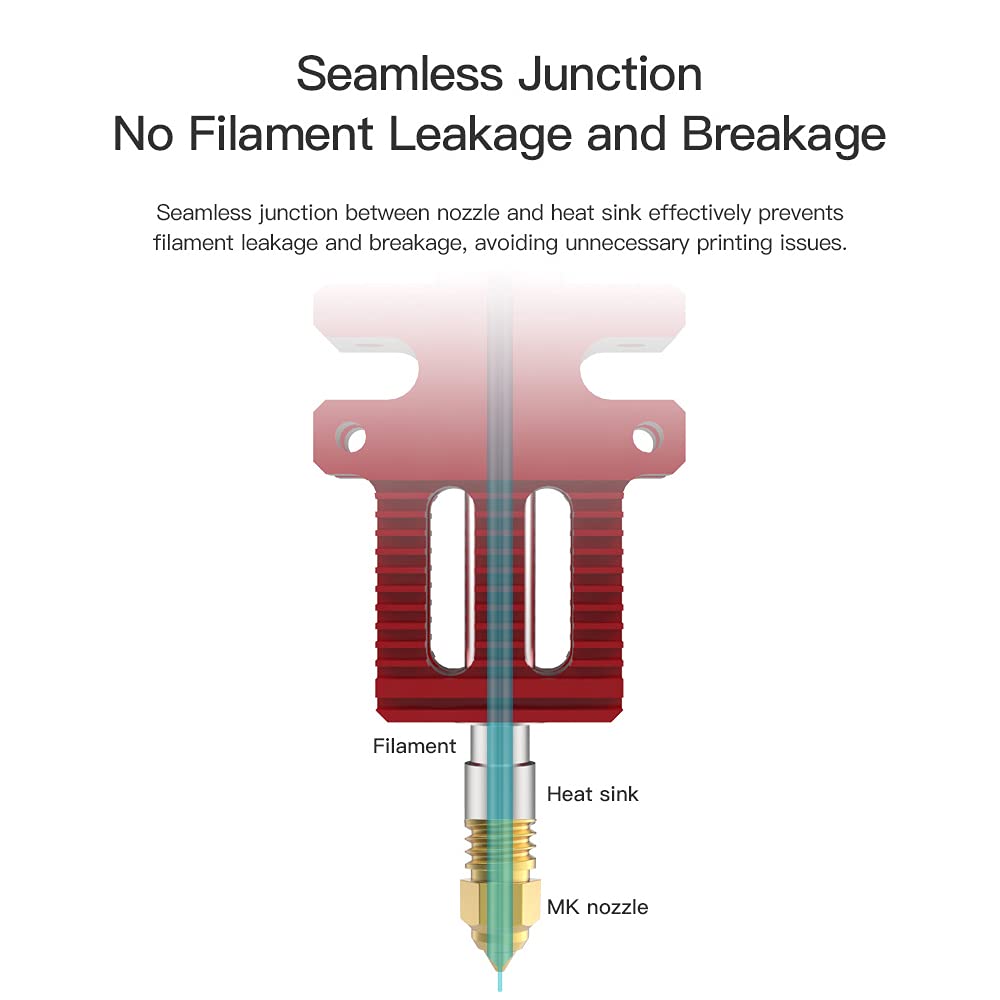 Weight: N.W 280g, G.W 350G. Package size: 165x155x65mm. 1.High quality thermistor and heating tube is up to 260C degree, with rapid-risen temperature, precise temperature control and good stability. 2. The optimized internal structure of seamless connection between hotend and heatbreak accelerates the hotend to dissipate heat and the heatbreak to insulate heat, letting go of nozzle blockage. 3. Insulation silicone sock with flame retardant, Equipped with flame retardant material, it has good heat preservation effect and effectively keep the heat block and hotend clean. 4. 0.4mm ultra thin heatbreak wall with excellent heat insulation, The roughness of hotend inner hole is Ra0.4 smooth filament-pushing. Optimized design of heatbreak decreasess the loss of heater block temperature by reducing heat conduction, and at the same time, it transfers its temperature to the radiator, which ensures the production stability.
