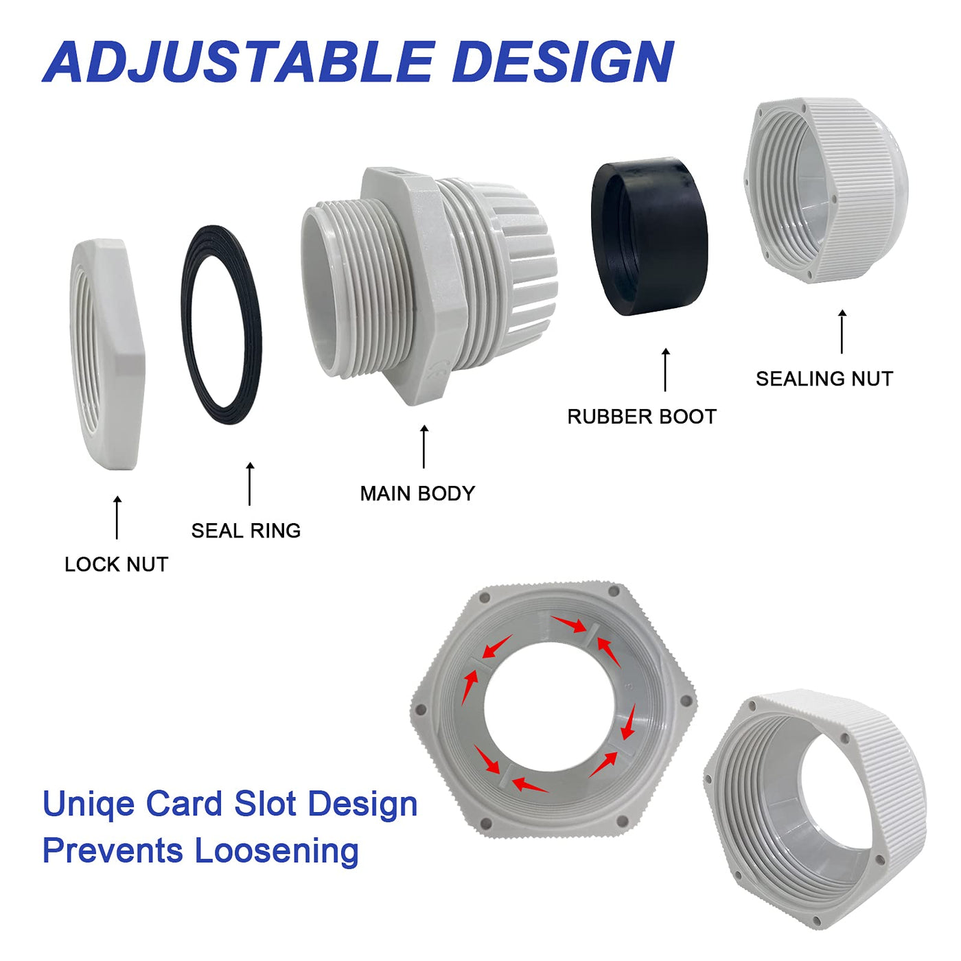 Bolatus M32 cable gland set environmental protection fireproof cable gland waterproof adjustable IP68 cable glands gray with lock nut Plastic, It is a safety accessory, Don't worry about the safety wiring! - The cable gland consists of five parts: lock nut, washer, clamping claw, sealing ring and sealing nut. - Waterproof cable gland suitable for professionals and amateurs. The screw connections can be easily tightened by hand, so pliers are hardly necessary. - Cable glands relieve the strain on the cable in the wall and look high-quality and professional. Specification: Material: Nylon + Rubber Color: Gray white Protection class: IP68 waterproof Temperature resistance: -40 ºC to max. 100 ºC Size:M32(16-21mm) Delivery includes: 6pcs x M32 cable gland waterproof