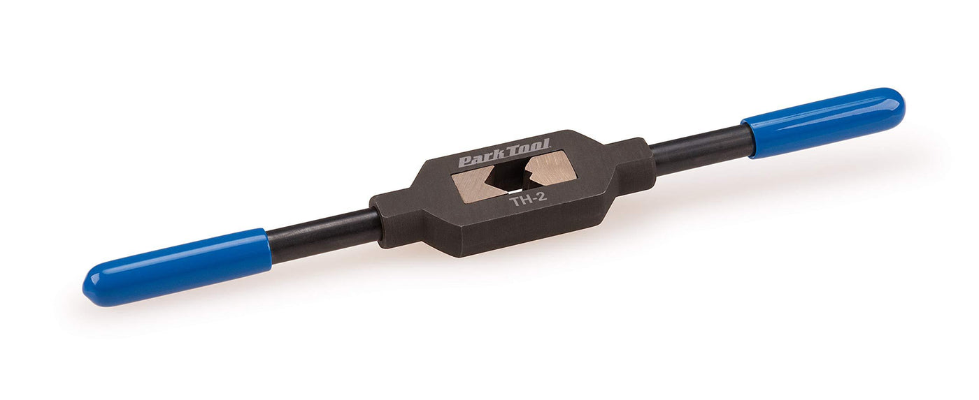 Park Tool TH-2 Tap Handle Made for the rigors of everyday shop use, the TH-2 is an adjustable tap handle that fits many common bicycle taps for medium-sized thread applications, including derailleur hangers, pedals, and more. Fits most metric taps from M4 to M12Fits most standard taps from 8 to 9/16" Use the TH-2 with any of the following Park Tool Bicycle Taps: Read more Park Tool TAP-3 Park Tool TAP-6 Park Tool TAP-10 Park Tool TAP-12.1 Park Tool TAP-12.2 Park Tool TAP-12.3 Thread Pitch 1/2″ x 20 tpi 9/16″ x 20 tpi M10 x 1 M12 x 1 M12 x 1.5 M12 x 1.75 Typical Application Pedal threads Pedal threads Derailleur hanger 12mm thru axles 12mm thru axles 12mm thru axles TRUSTED SINCE 1963 Since our origins in the back of a bike shop in 1963, it has been Park Tool's sole mission to design and manufacture high- quality tools that empower mechanics and riders of all skill levels to service their bicycles. Each one of our 500+ tools are a product of our decades of experience and expertise in the industry, in the shop and on the trail. Read more