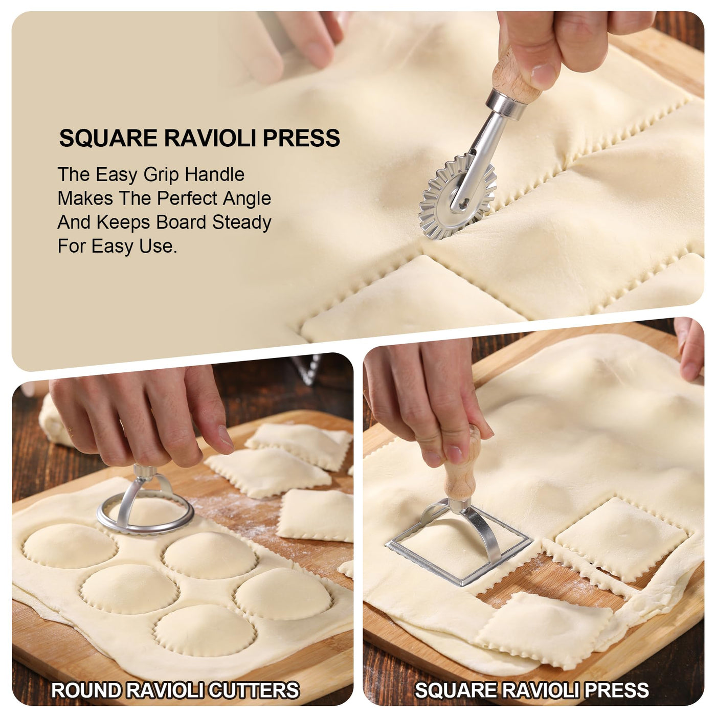 - PASTA MAKING TOOL SET- Include 3pcs Ravioli Stamp Maker Cutter with Roller Wheel Set, 4 in 1 Gnocchi Board, Wooden Pasta Cutter and Pasta Rolling Pins. These tools combine to create a set that meets your pasta making needs.