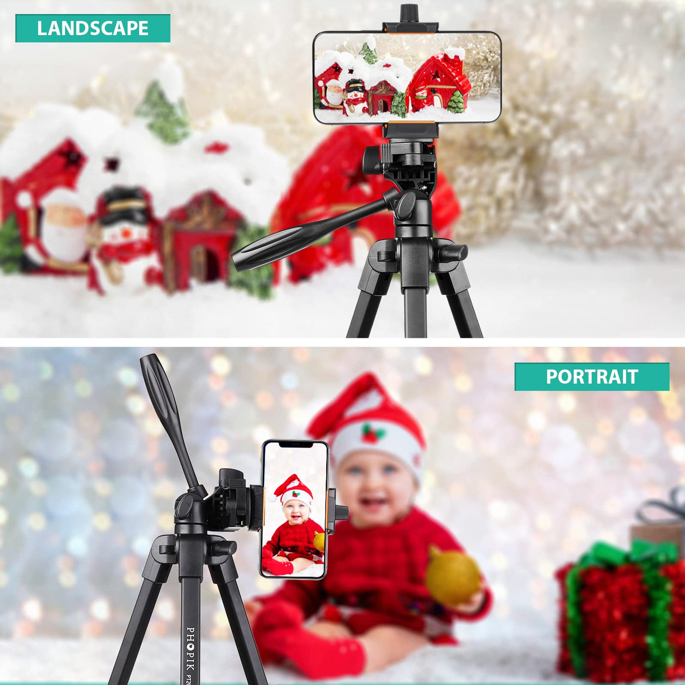 PHOPIK Phone Tripod 55 inches, Aluminum Travel/Camera/Mobile Phone Tripod with Carrying Bag with a Maximum Load of 6.6 pounds, Remote Shutter, Compatible with Smartphone & Tablet & Camera.