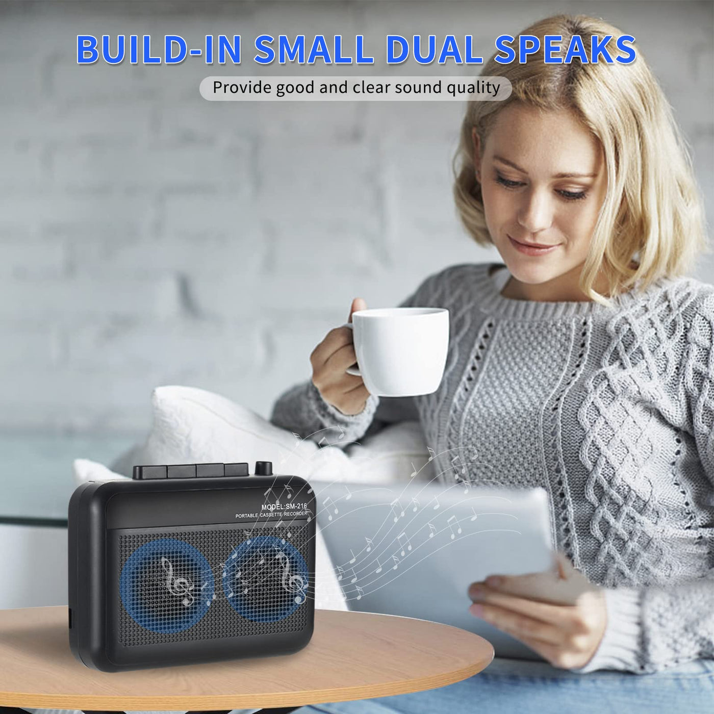 - Build-in Dual Speaks & Earphone JackWith high quality big loud speakers, listening to the cassette with crystal clear and good sound quality. The 3.5mm earphone jack also provides private personal listening space.