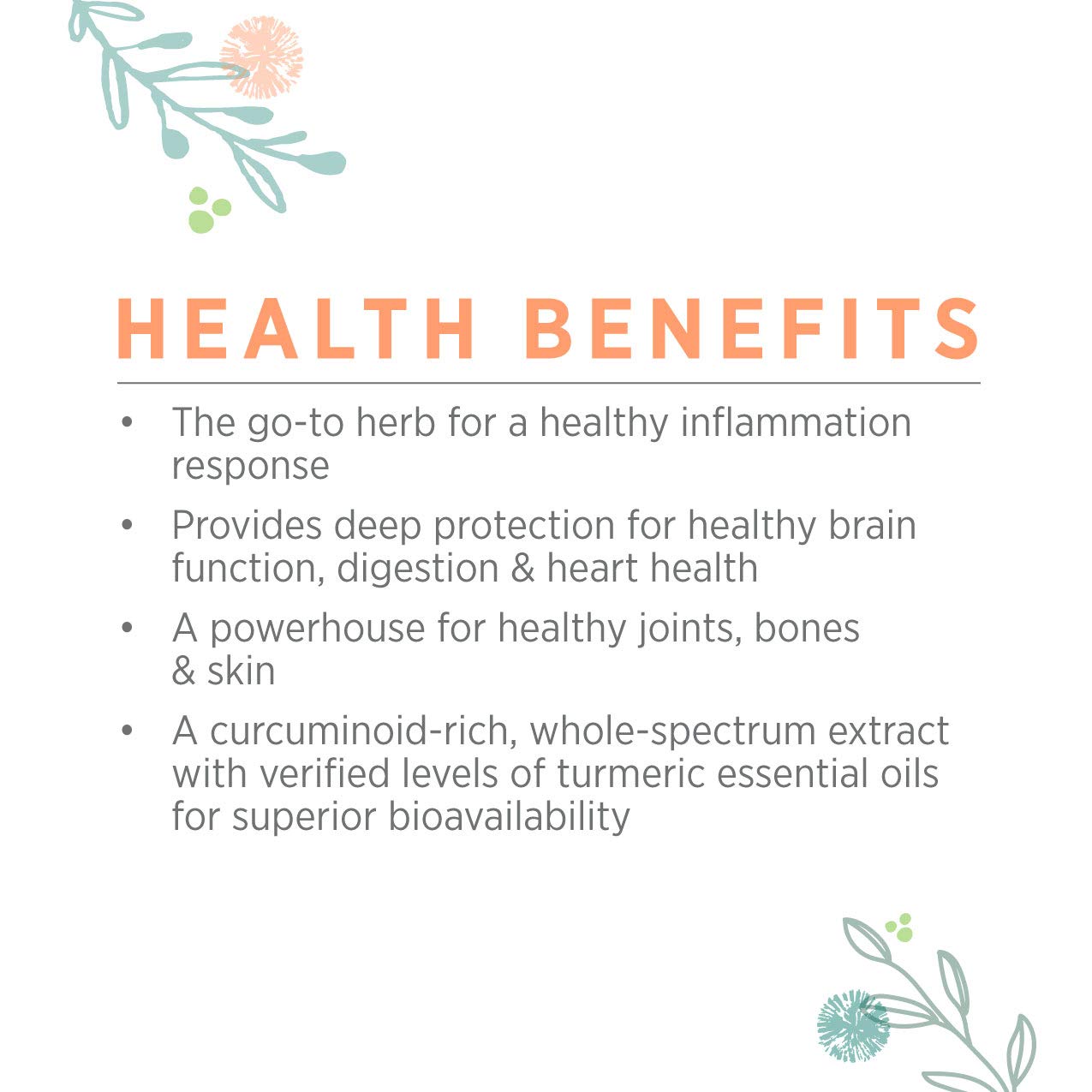 - Whole-Spectrum: 325 mg Curcuminoids, 47.5 mg Essential Oils/Turmerones & 40 mg Polysaccharides (per capsule)