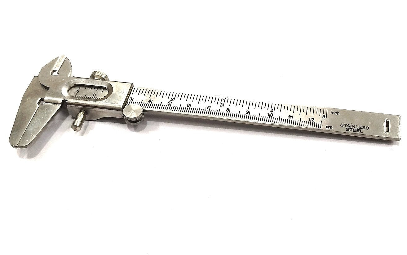 QUALITY NON DIGITAL VERNIER CALIPER- PROFESSIONAL METRIC -IMPERIAL MEASURING SYSTEM. EASY READING TOOLS FOR CHECKING INSIDE, OUTSIDE, DEPTH & STEP MEASUREMENTS. GRADUATION ON ONE SIDE IS 1/10 CM WITH 1/100 CM VERNIER. GRADUATION ON OTHER SIDE IS 1/16" INCHES WITH 1/128 INCH VERNIER. MEASURING RANGE UPTO 5" INCHES & 12.5 CMS . CALIPER LOCK FOR REPETITIVE MEASUREMENTS. FRICTION ROLLER SIMPLIFIES ADJUSTMENTS. FAST SHIPPING WITH TRACKABLE AWB NO. TO USA AND WORLDWIDE.