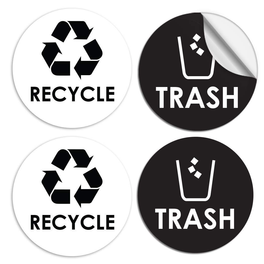 - PERFECT FOR ANYONE (1 BLACK SET & 1 WHITE SET TRASH RECYCLE LOGO) - Tired of picking trash out of your recycle bin? These 4" x 4" inch trash recycle decal stickers with large lettering and graphics picture will help you and your family stay organized. Your guest will no longer be putting the recyclables in the trash can and the garbage in the recycle containers. Easily sort items such as bottles, plastic tumbler, aluminum cans, electronics, paper, dump, and hazardous solid.
