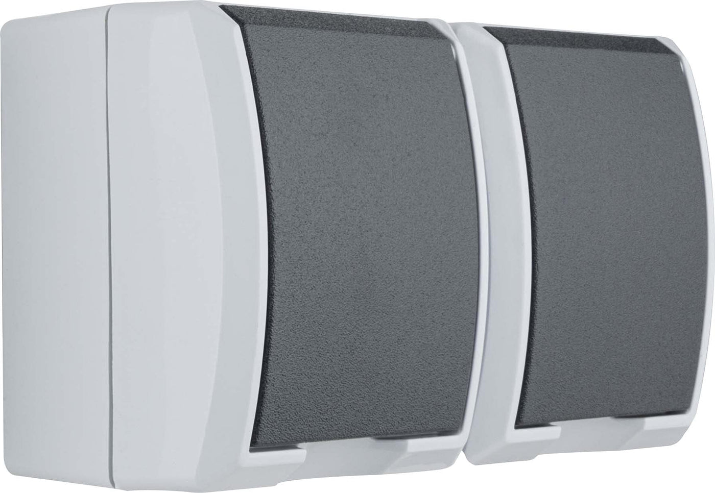 REV AquaForm, double socket, moisture-proof socket, IP44, single-pole, surface-mounted, gray socket, 2-way socket, single