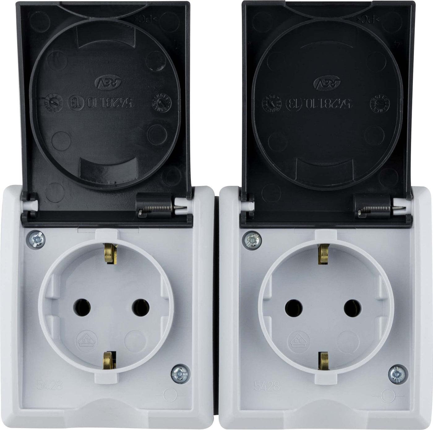 - The double socket has two dark gray hinged lids, which protect against moisture. Ideally suited for the use of IPx4 angle plugs outdoors