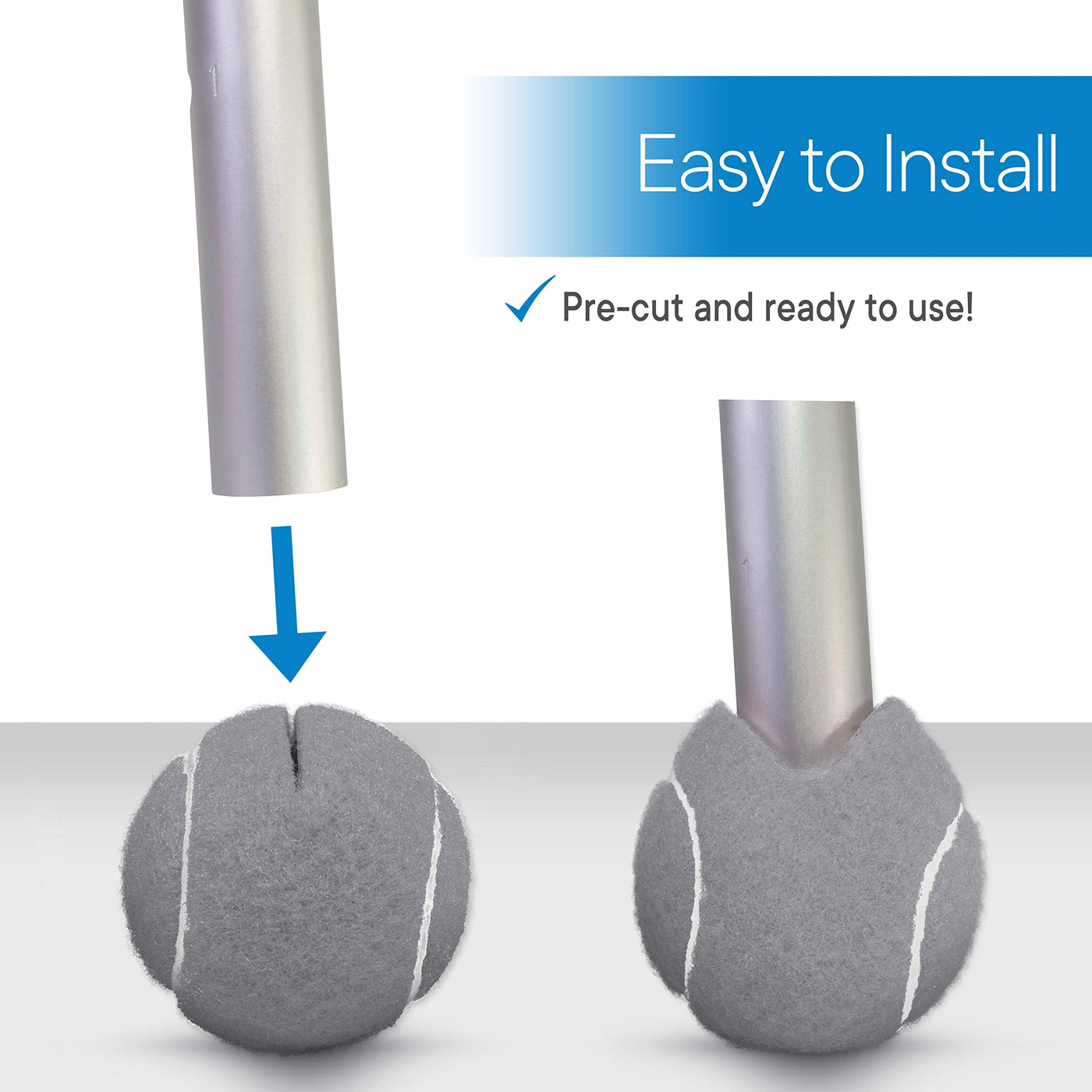 - READY TO USE: Pre-cut opening makes it easy to put onto walkers. Just slip the walker balls on and go. No tools required!